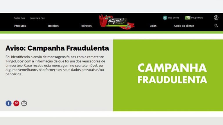 A cadeia de supermercados indica que foi identificado o envio de SMS falsas com a informação de que o cliente foi vencedor de um sorteio.