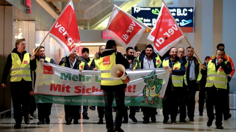 Pessoal de segurança dos aeroportos de Frankfurt, Hannover, Bremen, Leipzig, Dresden e Erfurt reclama melhores salários e negociação coletiva.