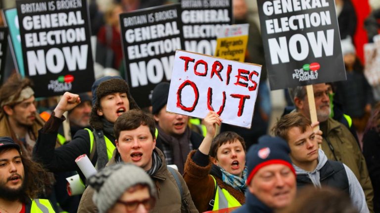 Milhares de pessoas manifestam-se em Londres este sábado num protesto contra as políticas de austeridade no país que está de saída da União Europeia.