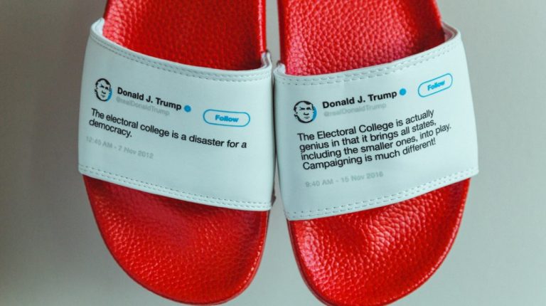 Sam Morrison deslizou sobre os mais de 40 mil tweets de Donald Trump e quis “enfatizar a sua hipocrisia”. Vendeu mil pares em menos de um mês.