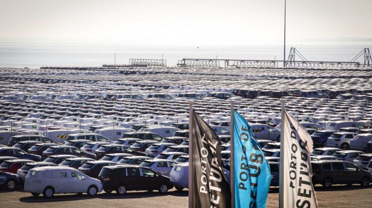 Navio cargueiro Paglia chega às seis da manhã de quinta-feira ao Porto de Setúbal. Autoeuropa tem milhares de carros estacionados há duas semanas.