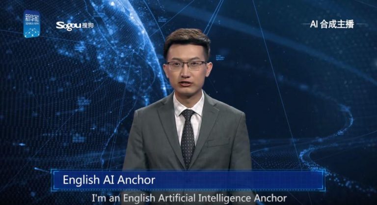 Na China, foi apresentado o primeiro pivô de IA do mundo. O visual e movimentos foram copiados de um pivô de notícias real, da agência chinesa.