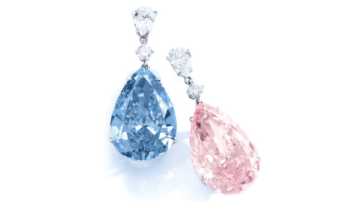 Os brincos, conhecidos como Apollo Blue e Artemis Pink, foram adquiridos por um comprador anónimo por 51,6 milhões de euros num leilão da Sotheby’s.