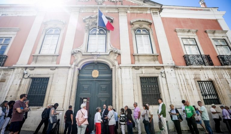 Os eleitores franceses esperaram cerca de uma hora numa longa fila ao lado da embaixada francesa em Lisboa para poderem votar
