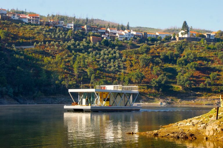 A casa está atracada na marina de Álvaro, uma aldeia no concelho de Oleiros.