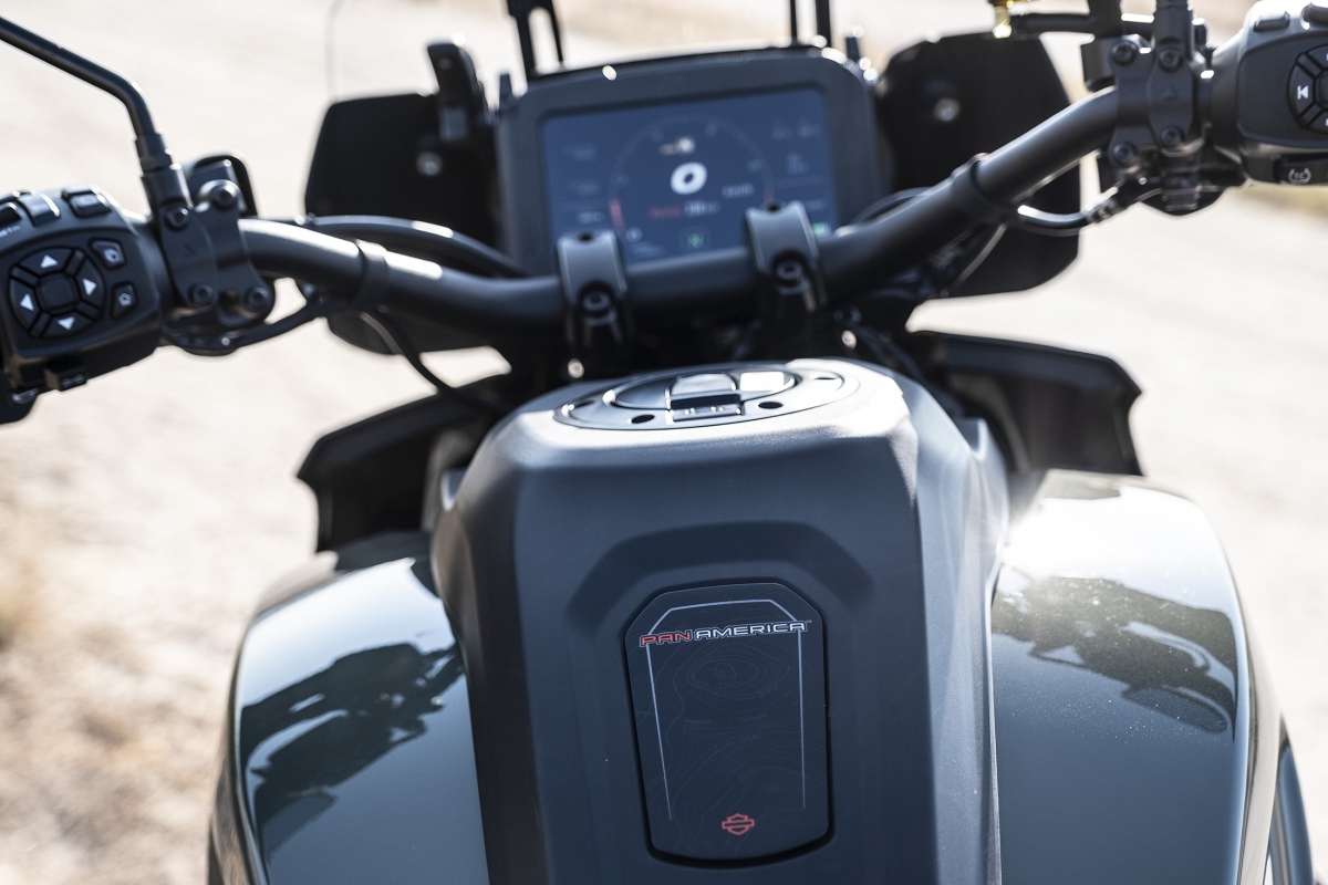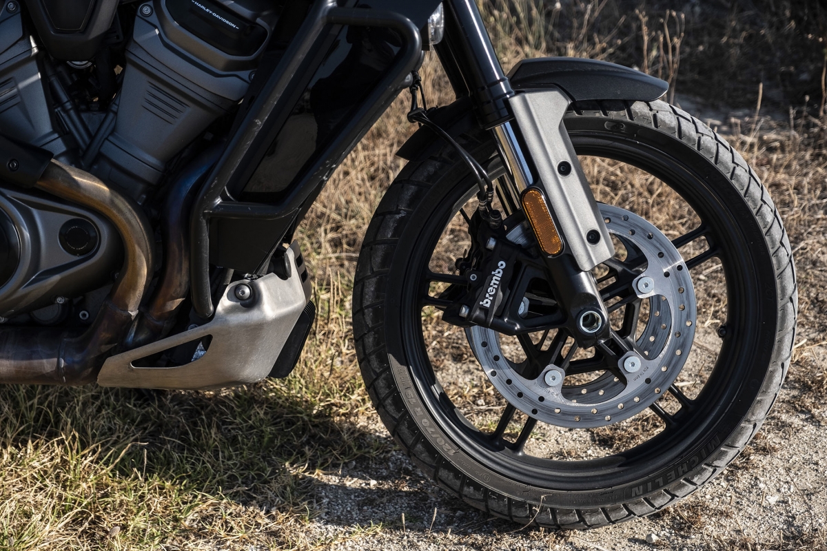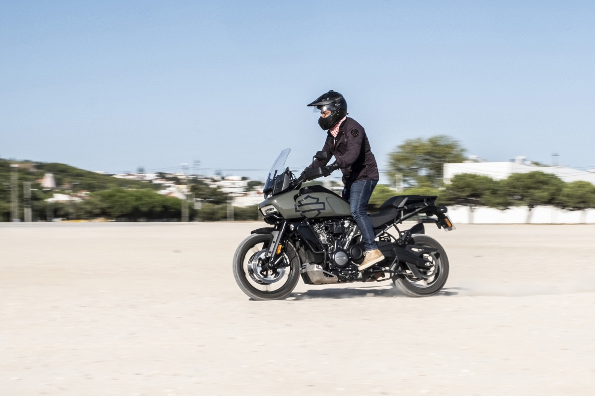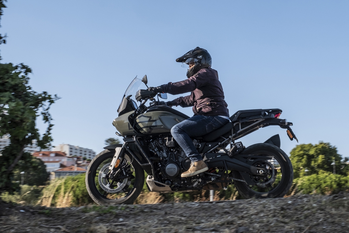 O segredo do comportamento numa moto big trail é o resultado da soma das partes, mas no caso da surpreendente Pan America deve-se muito ao novo motor Revolution Max, que em comum com os anteriores motores tem apenas o facto de ser um V-Twin. Os engenheiros são os primeiros a reconhecer que primeiro desenvolveram o motor e só depois pensaram no que podiam fazer com ele. Produz 150 cv, atinge o redline às 9500 rpm – quase o dobro dos anteriores – e deixamos de ouvir e sentir o tradicional thump thump descompassado para dar lugar a um rugido com caráter. O novo veio de equilíbrio é tão eficaz que os engenheiros tiveram de ajustá-lo para deixar passar alguma vibração, tão característica nas motos da HD. Tem ainda um sofisticado controlo de abertura de válvulas computorizado, que resulta num comportamento feroz quando usado agressivamente, mas dócil quando é preciso, sobretudo em fora de estrada, mais complicado a velocidades baixas.