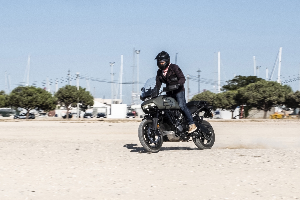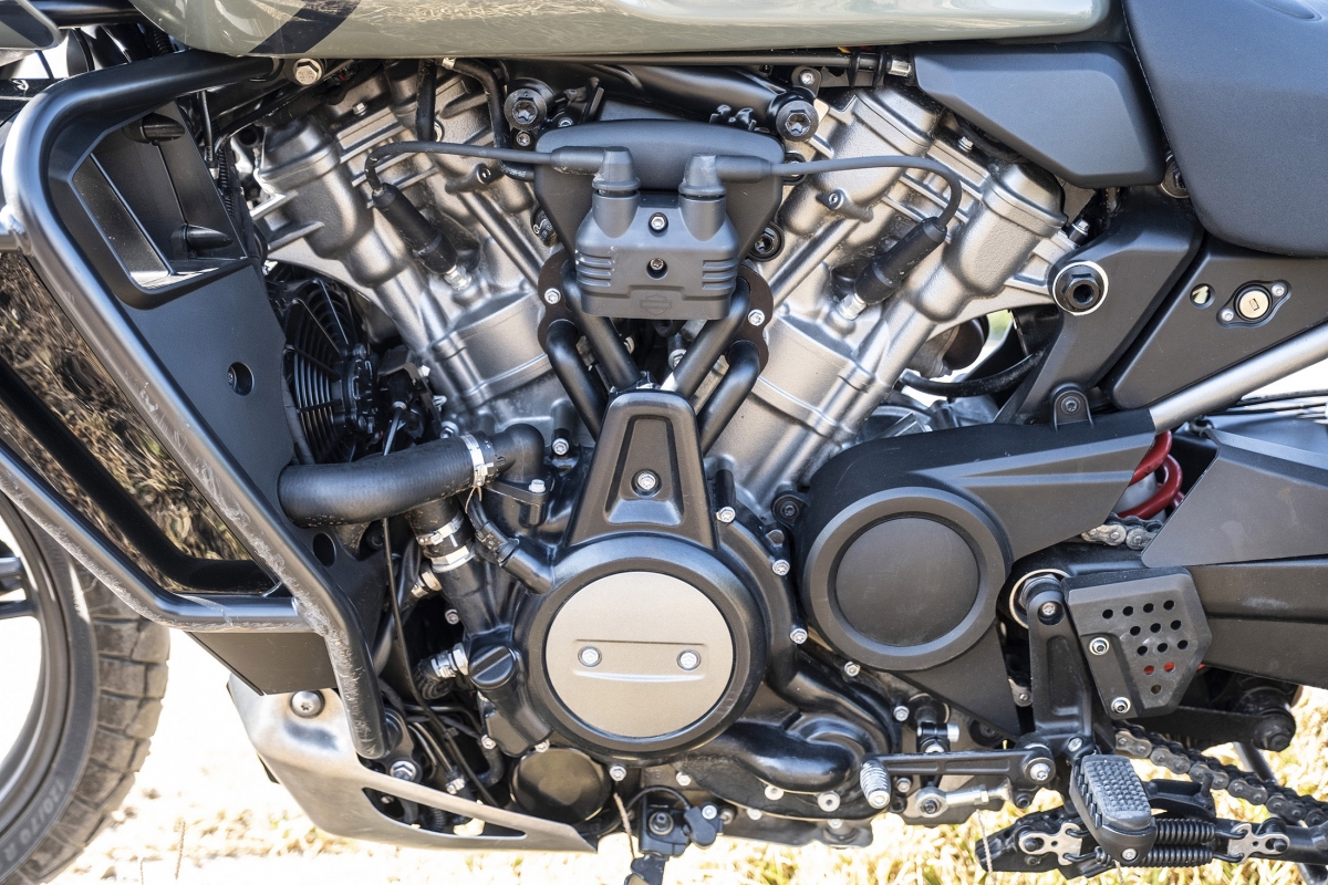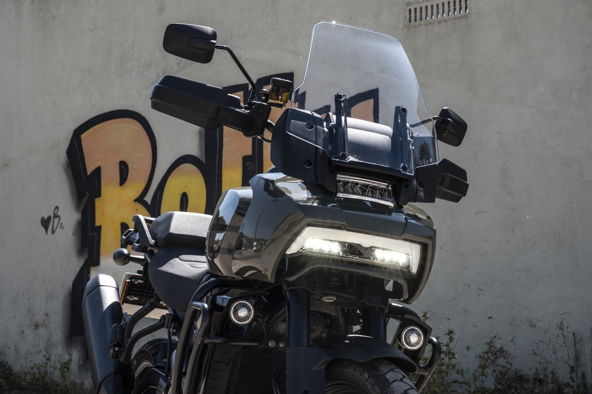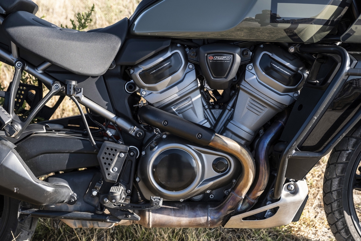 O segredo do comportamento numa moto big trail é o resultado da soma das partes, mas no caso da surpreendente Pan America deve-se muito ao novo motor Revolution Max, que em comum com os anteriores motores tem apenas o facto de ser um V-Twin. Os engenheiros são os primeiros a reconhecer que primeiro desenvolveram o motor e só depois pensaram no que podiam fazer com ele. Produz 150 cv, atinge o redline às 9500 rpm – quase o dobro dos anteriores – e deixamos de ouvir e sentir o tradicional thump thump descompassado para dar lugar a um rugido com caráter. O novo veio de equilíbrio é tão eficaz que os engenheiros tiveram de ajustá-lo para deixar passar alguma vibração, tão característica nas motos da HD. Tem ainda um sofisticado controlo de abertura de válvulas computorizado, que resulta num comportamento feroz quando usado agressivamente, mas dócil quando é preciso, sobretudo em fora de estrada, mais complicado a velocidades baixas.