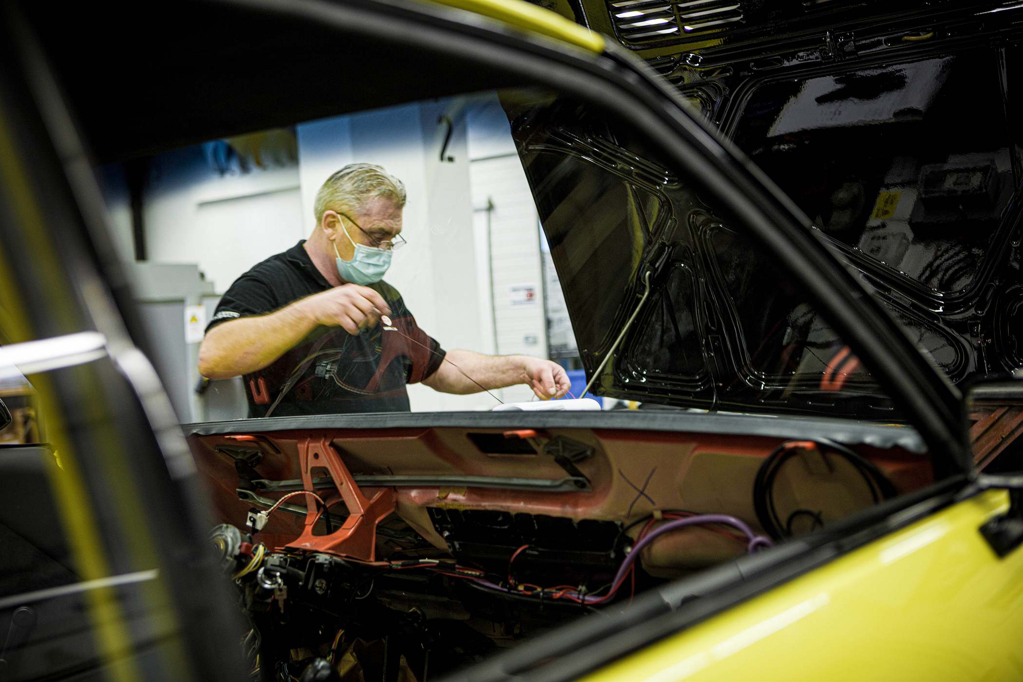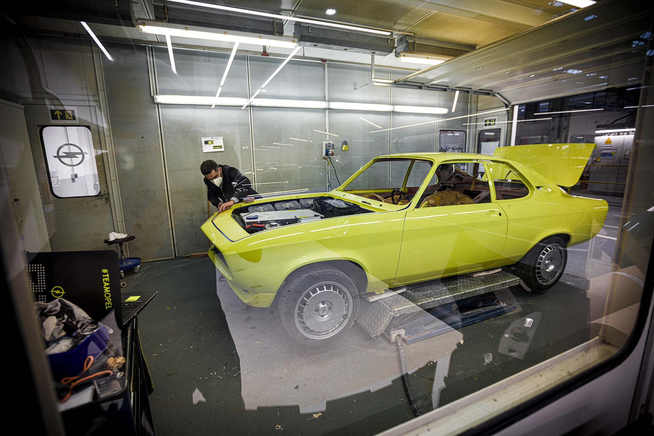 Um típico representante da euforia de cor da década de 1970! Um ícone de estilo. Em estado original e, de uma forma geral, em boas condições, mas um pouco desgastado. Ainda por restaurar e talvez destinado a ser dador de peças. Entretanto, a ofensiva “E” da Opel estava em pleno andamento com novos modelos como o Opel Mokka-e. E assim, uma coisa levou à outra. Afinal de contas, há uma forte tendência atual para os ‘restomods’, veículos clássicos com motorização e equipamentos modernos. Então porque não dar ao Manta uma nova vida elétrica?