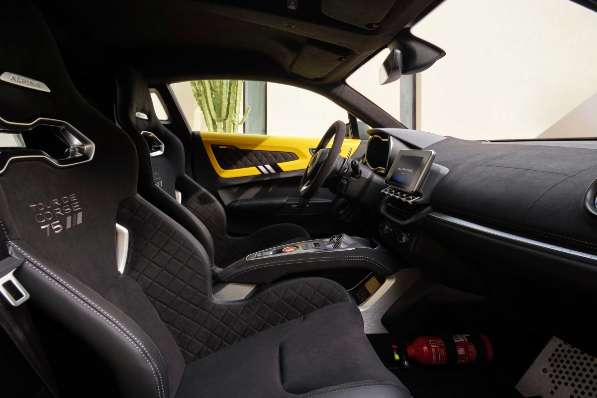 Um número 7 colocado na luz traseira do lado do condutor leva-nos a uma viagem ao passado, uma vez que esse foi o número usado por um dos A110 que competiu no Tour de Corse, conhecido também por rali das 10.000 curvas. Aumentando o espírito de competição, a Alpine adicionou também assentos com arnês, reforçando o elemento “rali” do A110 Tour de Corse.