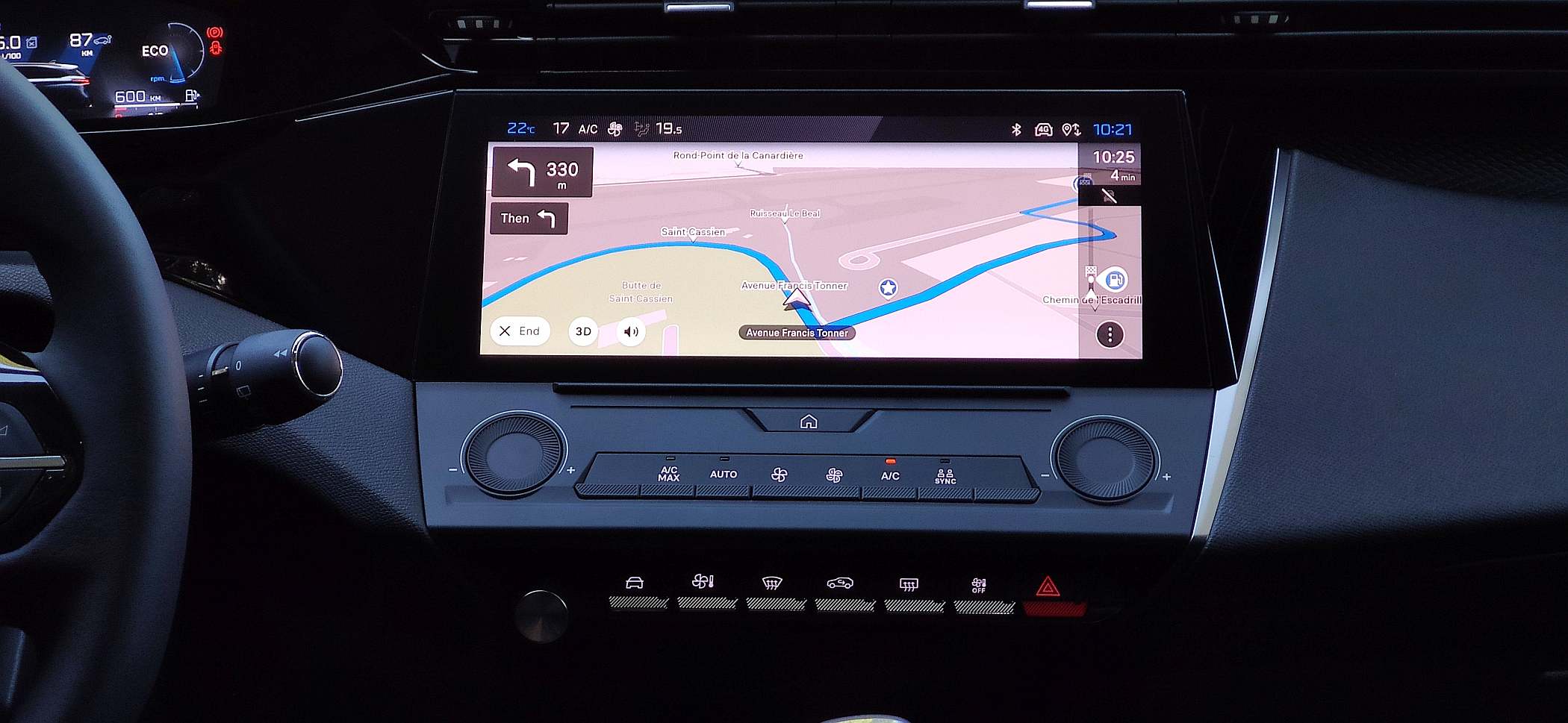 Como referido, o nível de equipamento era o mais básico, pelo que a versão do sistema de infoentretenimento era a mais simples, com um ecrã tátil de menores dimensões e comandos suplementares físicos logo abaixo, incluindo para a climatização. Não obstante a menor sofisticação, parece-nos que esta configuração apenas perde em espetacularidade de apresentação, mantendo a mesma competência de funcionamento e de interação.