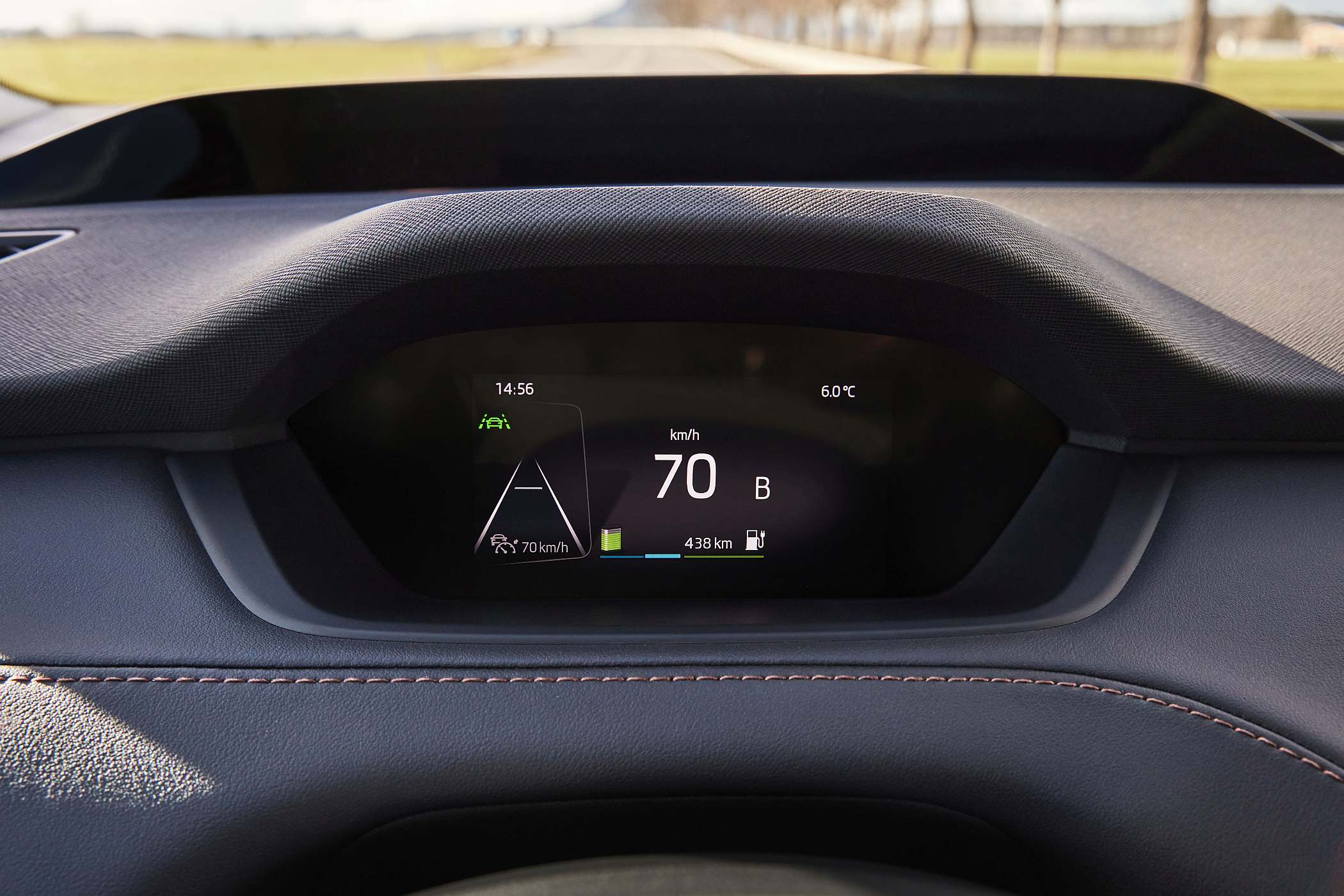 Como acontece em outros modelos da marca, o Enyaq iV está disponível com seleção do modo de condução. São seis modos (Eco, Eco+, Conforto, Normal, Desportivo e Individual) que o utilizador pode usar não só para controlar a resposta do veículo ao acelerador, mas também o binário disponível, a velocidade máxima e a intensidade do ar condicionado. O modo Eco+ chegará depois, sendo atualizado pela marca, de acordo com informações do importador nacional. Assim, o nosso percurso foi feito quase inteiramente em modo ‘Eco’, apenas usando o modo ‘Sport’ por um breve período para aquilatar da diferença – notória – em termos de respostas.