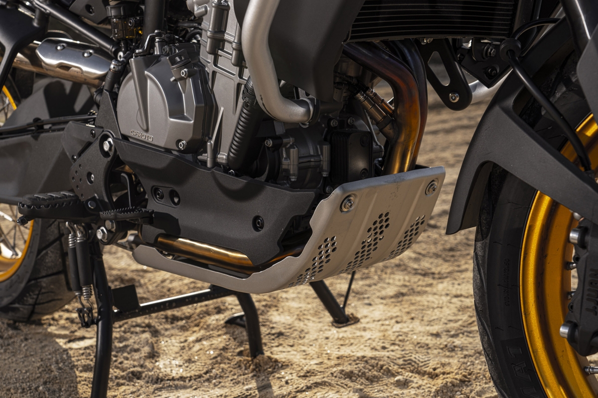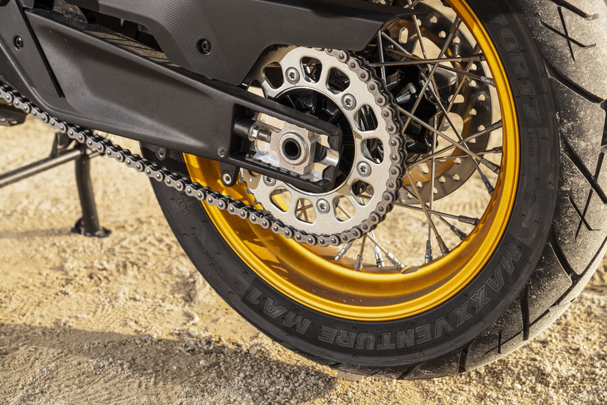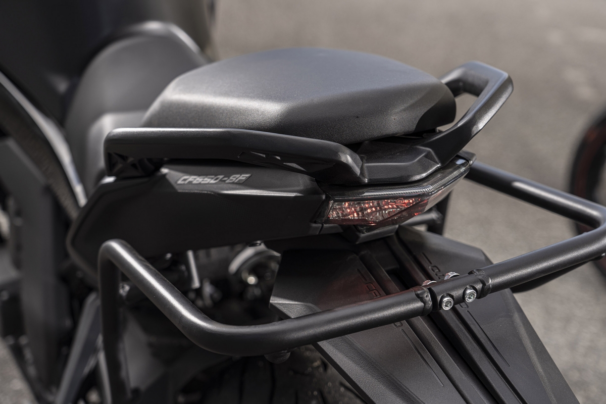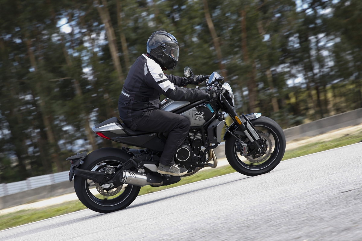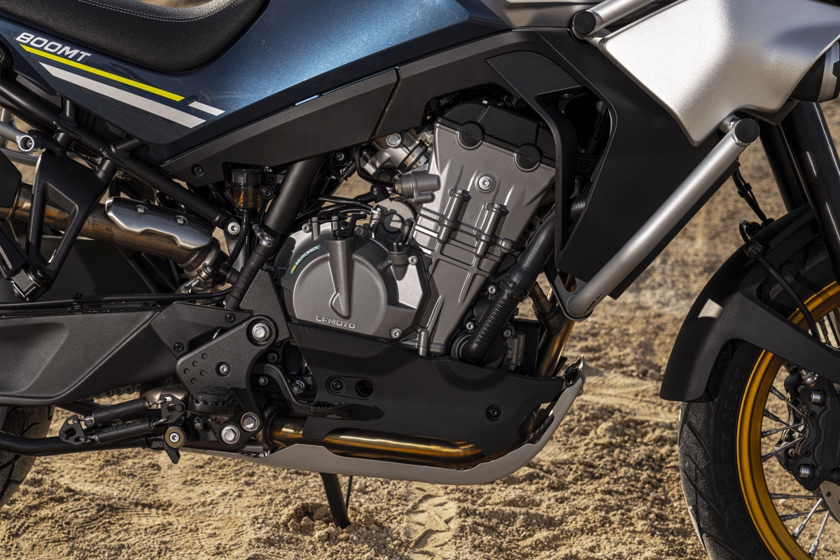Em Portugal a CFMOTO é representada pela Puretech, uma empresa de Matosinhos, cidade onde foi feita a apresentação das motos da marca. A novidade mais aguardada era a 800MT, uma trail do segmento intermédio com o motor LC8, o mesmo bicilindrico paralelo com 95 cv que equipa a KTM 790. Com um design muito apurado, é normal a surpresa por parte de quem a vê ao esperar ver nela o logótipo de uma marca mais familiar, porventura europeia ou japonesa. Da extensa lista de funcionalidades e equipamento destacamos: ride-by-wire, modos de condução, quick-shifter, cruise-control, punhos e assento aquecidos, smart-key, luzes automáticas com DRL, luzes de nevoeiro, alarme antirroubo, sistema de navegação integrado e painel TFT de 7 polegadas. A suspensão e amortecedor são KYB (Kayaba), os travões com pinças radiais J.Juan (marca espanhola comprada pela Brembo), temos embraiagem assistida e deslizante e ainda vem montado um amortecedor de direção. Vai estar disponível em duas versões: com rodas em liga leve ou de raios e pneus de estrada ou perfil misto, mas com o mesmo diâmetro 19 e 17 polegadas. Por fim o depósito com 19 litros de capacidade garante uma excelente autonomia.