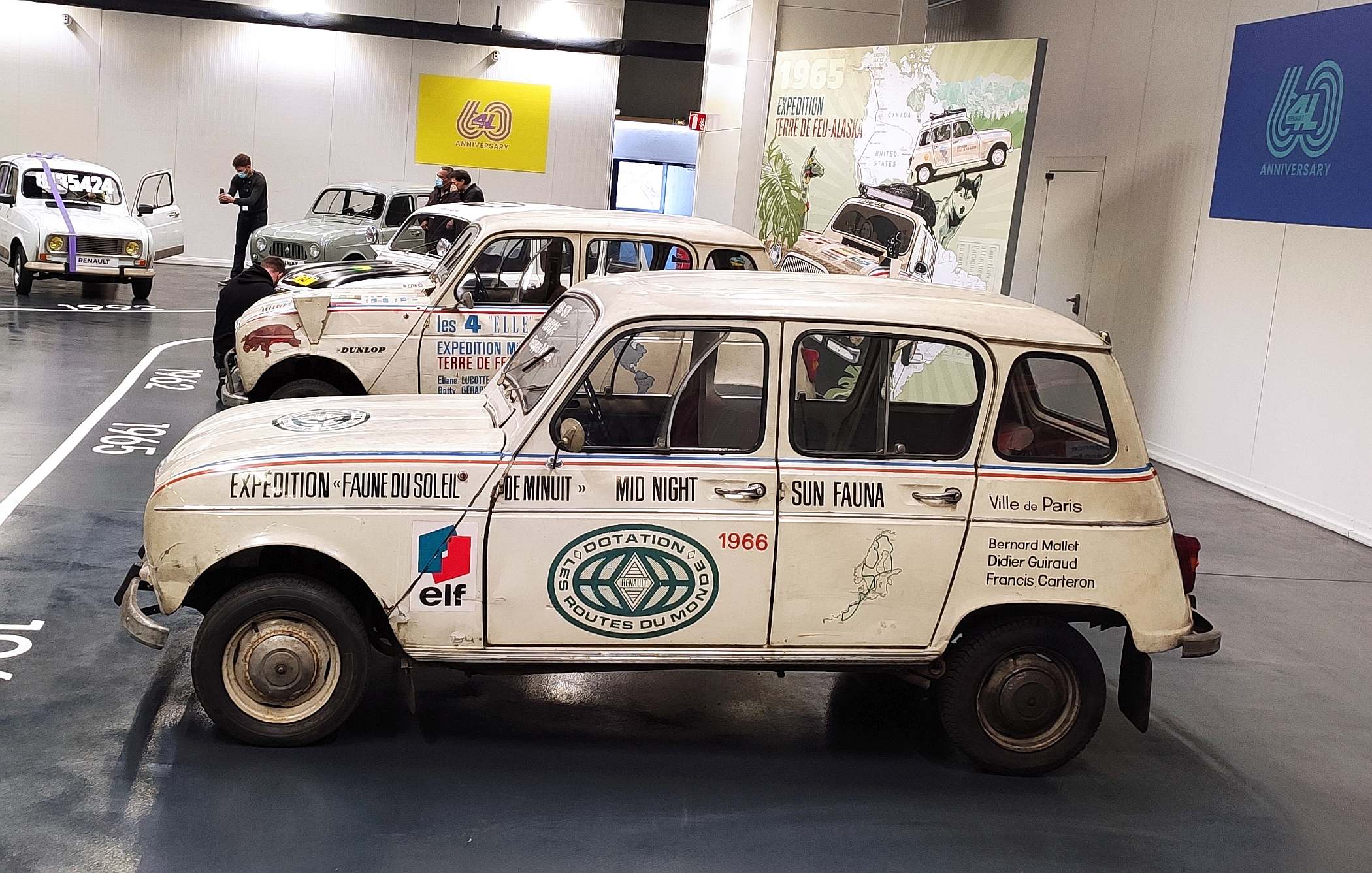 Em duplas divididas por duas 4L, Michèle Ray, Eliane Lucotte, Betty Gérard e Marline Libersart cumpriram o percurso e o exemplar na coleção da Renault evidencia todas as agruras por que passaram no trajeto – a carroçaria não esconde as amolgadelas e há até um pequeno suporte à frente para a instalação de uma câmara. A versão exposta tinha a alcunha ‘Fossette’.