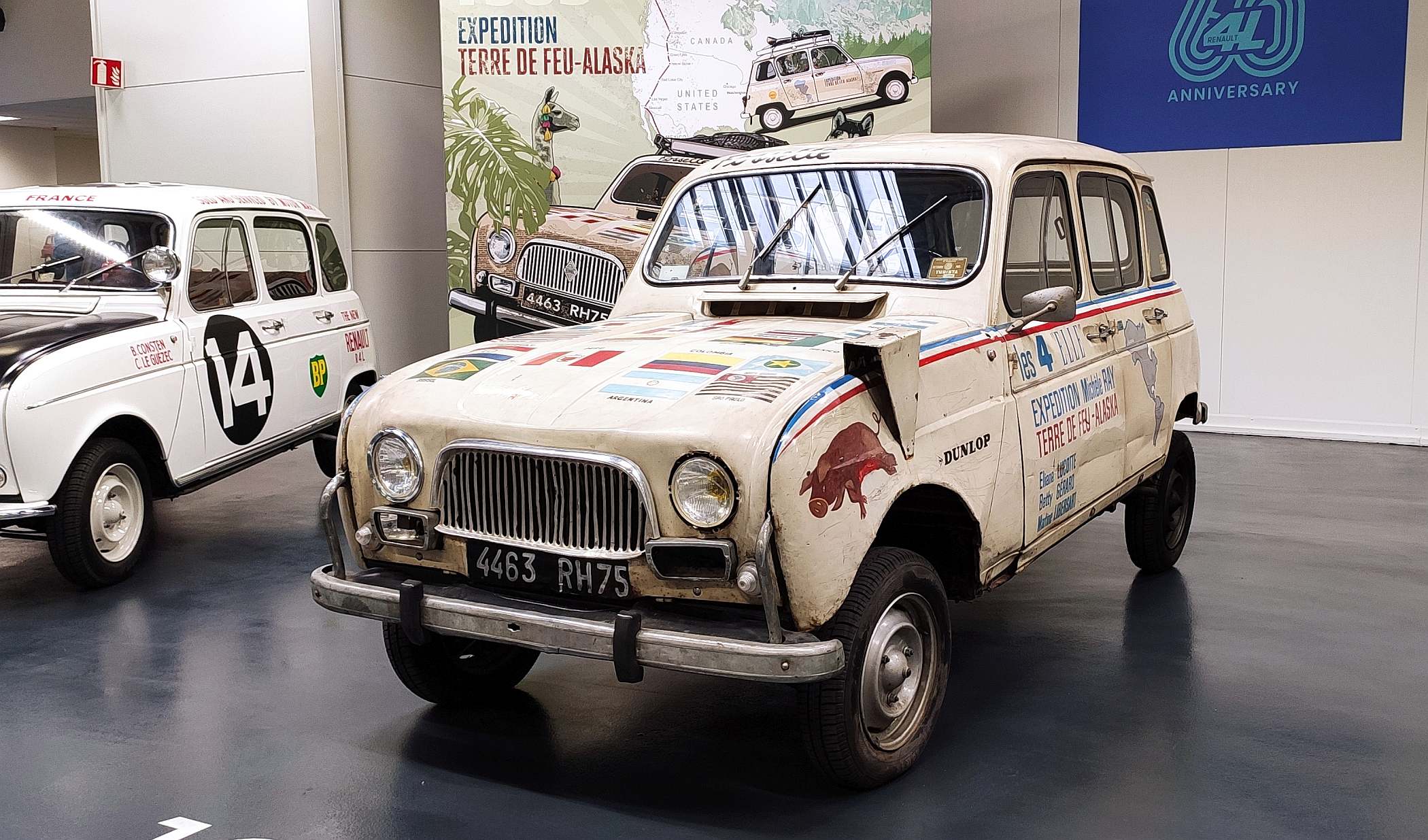 Com a popularidade do 4L a subir, a Renault também começou a usar o modelo em competições e expedições para demonstrar a sua fiabilidade e robustez. Um dos exemplares da exposição protagonizou a Expedition Michèle Ray-Terre de Feu-Alaska, que levou quatro modelos da ‘Elle’ a percorrer um longo trajeto pelo continente americano em 1965 numa época arriscada – não só com riscos no percurso, mas também pela própria vertente política, nem sempre pacífica.
