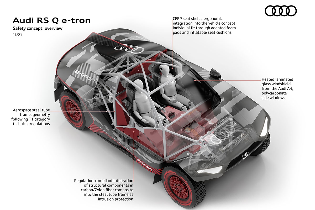 Pouco mais de um ano após a ideia inicial do conceito do RS Q e-tron desenvolvido em tempo recorde, a Audi Sport assumirá um dos maiores desafios que existem no mundo da competição: o Rali Dakar. E chega de uma forma inovadora com um conceito totalmente novo. A aposta recaiu no RS Q e-tron para enfrentar o deserto e a areia escaldante da Arábia Saudita. Se o nome RS Q e-tron sugere que é um veículo 100% elétrico, não é. É, sim, um veículo híbrido.