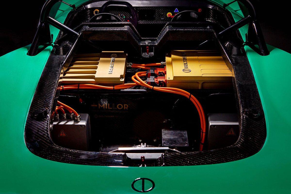 As baterias foram desenhadas pela empresa Mirror Battery e oferecem uma autonomia de 600 km (40 minutos em circuito). O seu ponto forte são os tempos de carregamento: em apenas 5 minutos recupera até 100 km.