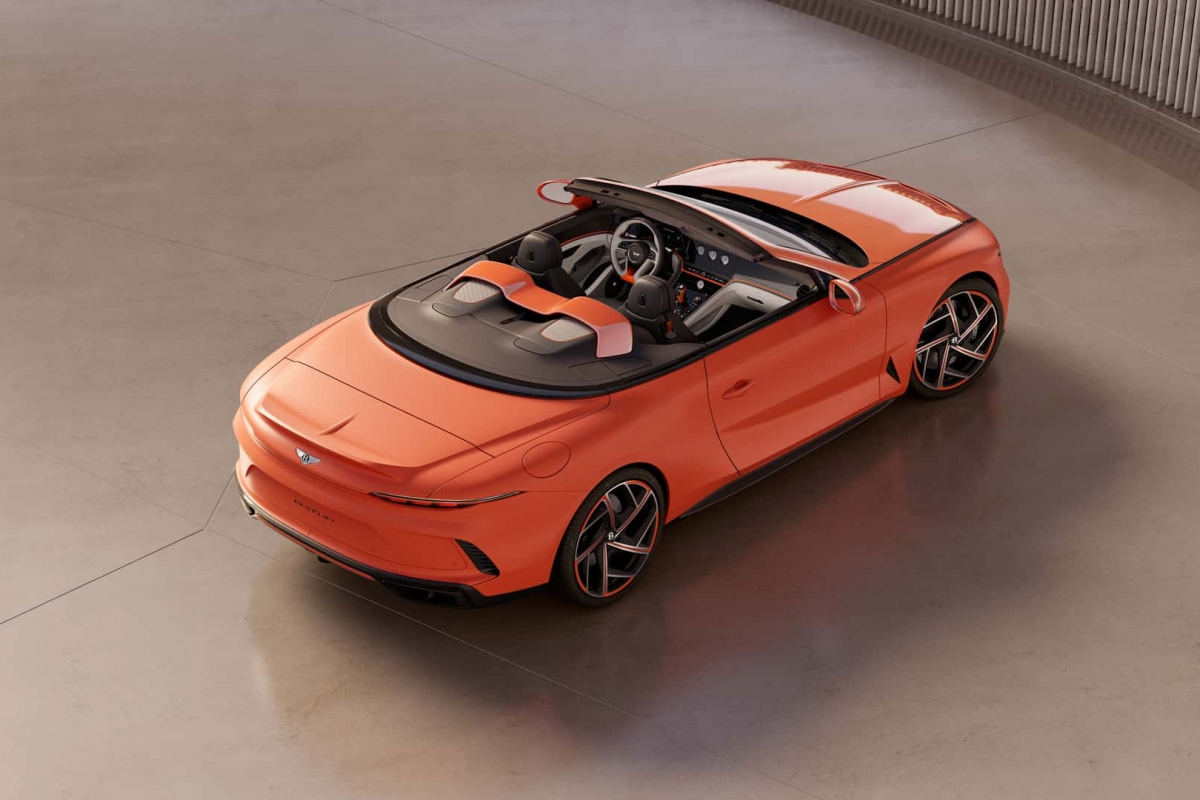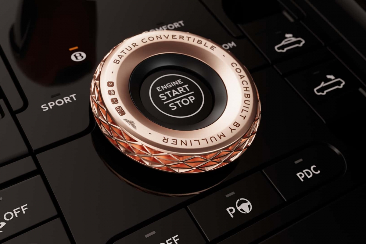 A marca britânica ultra-luxuosa afirma que este protótipo Batur Convertible Car #0 é tão elegante como os carros de produção subsequentes. Usa uma impressionante pintura acetinada Vermillion Gloss combinada com detalhes em fibra de carbono brilhante. No interior, existem inserções em ouro rosa para combinar com o seu iPhone. O habitáculo elegante, com a sua quota-parte de botões convencionais, mostradores triplos da velha guarda e um relógio analógico, lembra o Continental GT Convertible.