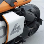 A sua compleição moderna surge ainda reforçada pela escolha de duas cores, entre o acabamento Mineral White e o negro matizado que se pode encontrar nas áreas técnicas, como na bateria, tornando essa mesma tecnologia numa parte do design. Por esse motivo, a marca decidiu não cobrir por completo as laterais da moto na traseira. Ao invés, estendem-se como ‘asas’ que permitem observar o motor, o sistema de refrigeração, o braço oscilante lateral, o braço de suspensão e a correia.