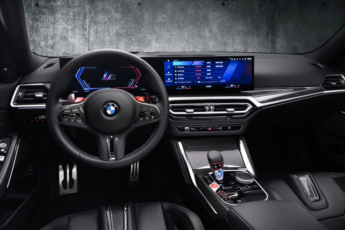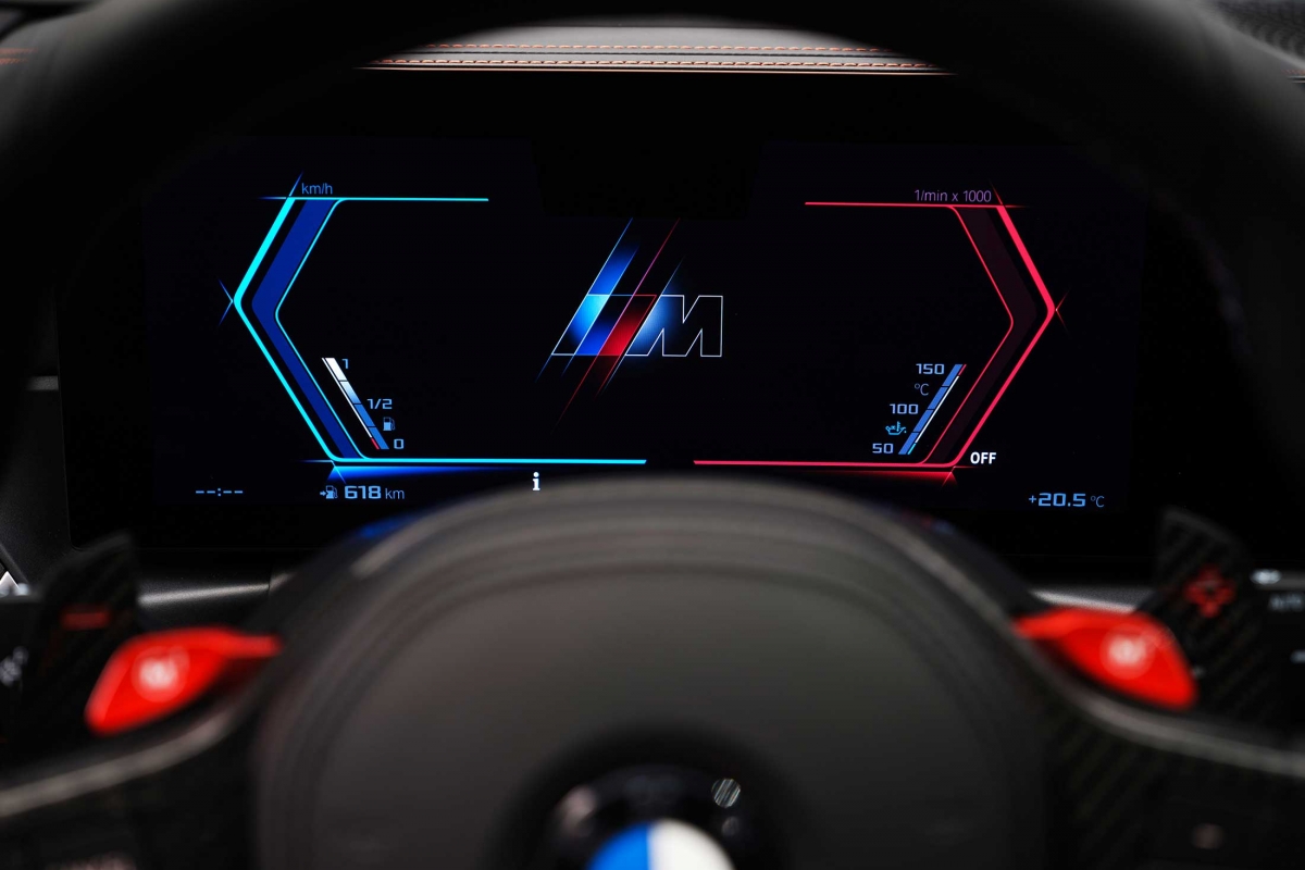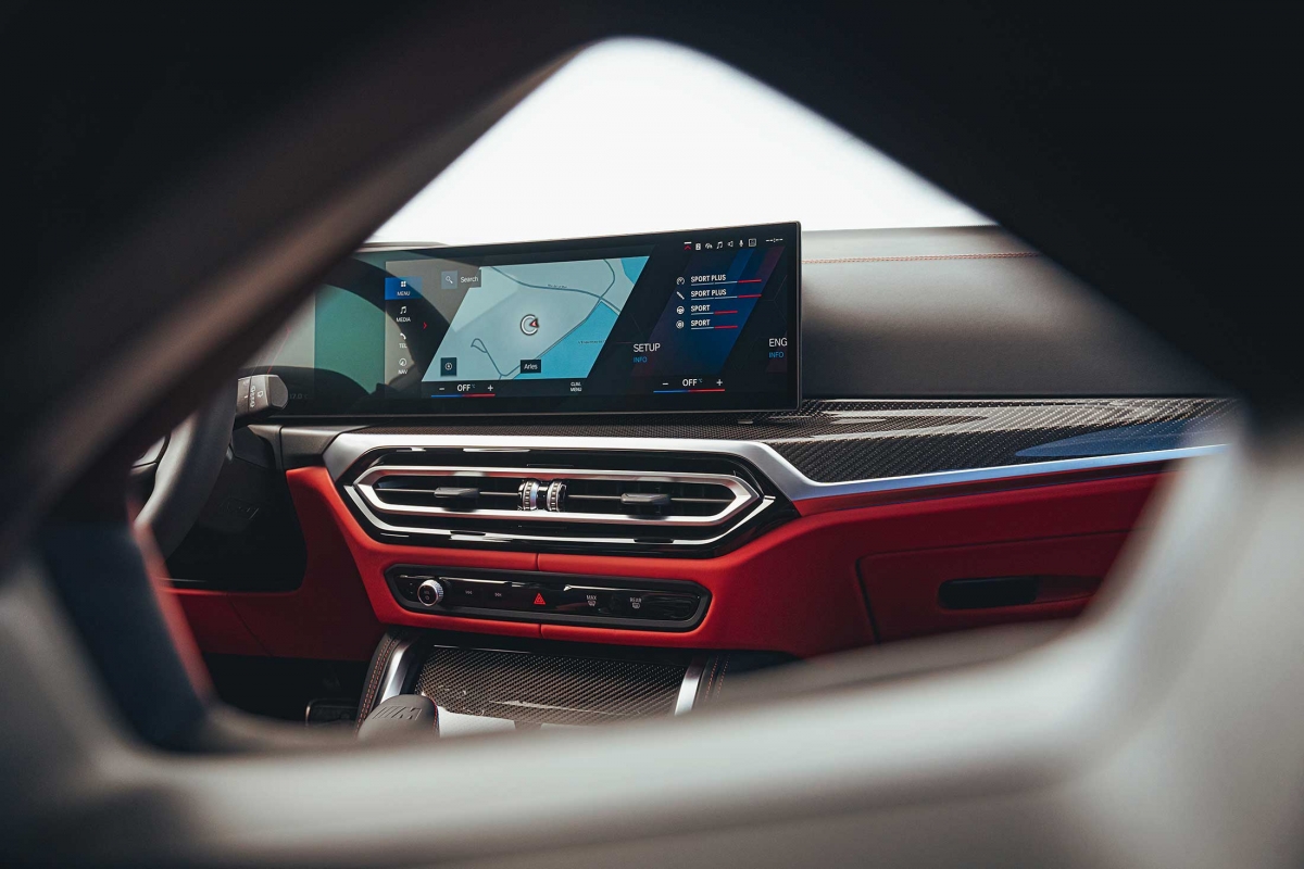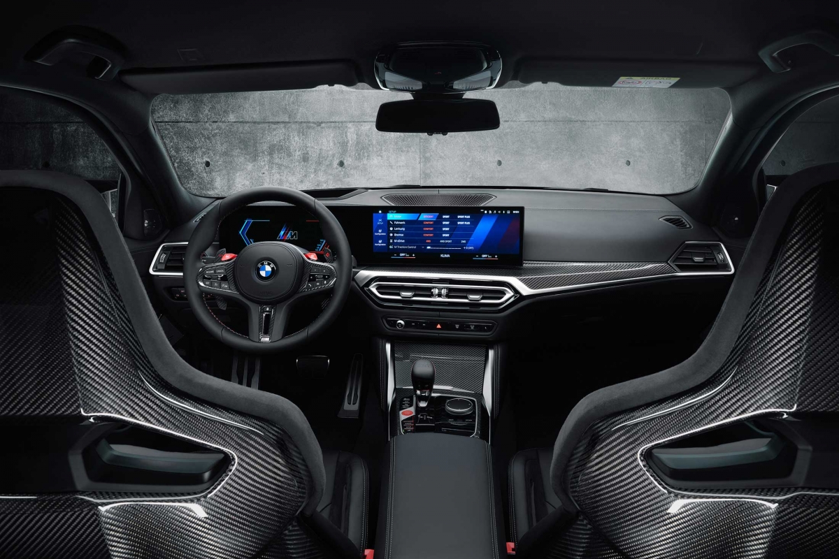 O interior assemelha-se ainda mais ao modelo base, com uma configuração familiar dominada por um novo ecrã de infoentretenimento de 14,9 polegadas com o mais recente sistema operacional iDrive de oitava geração e um cluster de 12,3 polegadas onde se encontram os mostradores. Tal como no M3 Saloon, o Touring oferece uma sensação de condução desportiva através de pormenores em vermelho espalhados pelo volante e nos assentos que, opcionalmente, podem ser fabricados inteiramente em fibra de carbono.