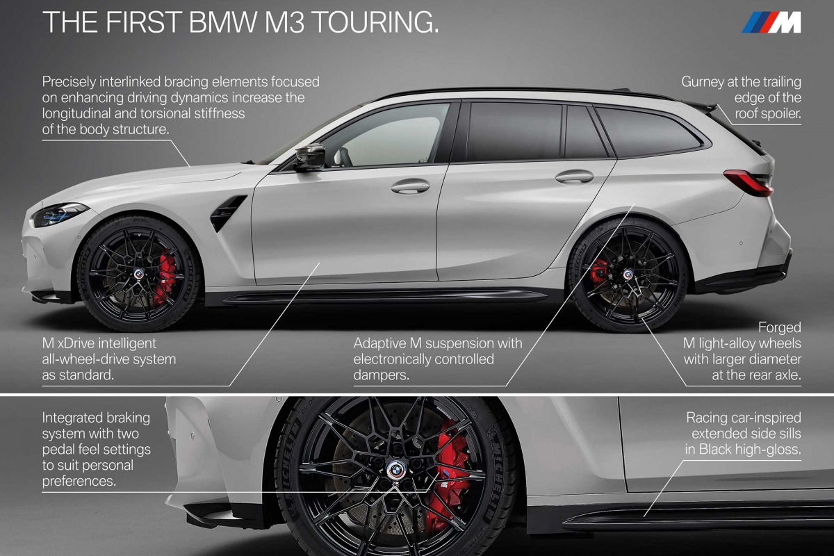 Integrado como parte das comemorações do 50º aniversário da divisão M, o novo BMW M3 Touring foi finalmente desvendado na totalidade em antecipação da sua apresentação oficial em Goodwood.
