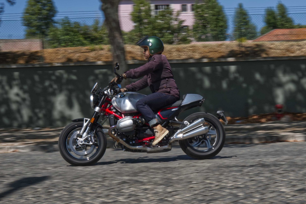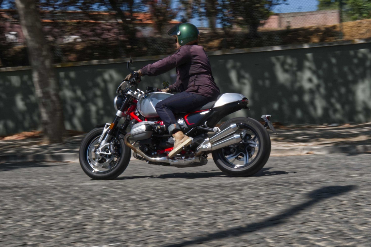 Conduzir a R 12 nineT na estrada certa com boas condições meteorológicas pode ser um exercício de meditação. No entanto, a R 12 também gosta de algumas rotações e pode proporcionar uma mudança de velocidade decisiva para uma ultrapassagem rápida. Desligando o controlo de tração (que pode ser feito em em movimento) e a roda dianteira irá levantar com uma facilidade despreocupada.