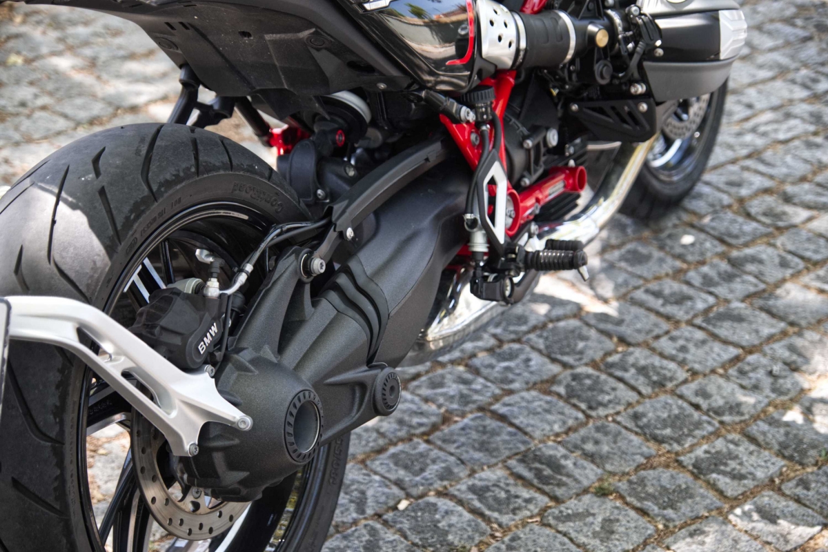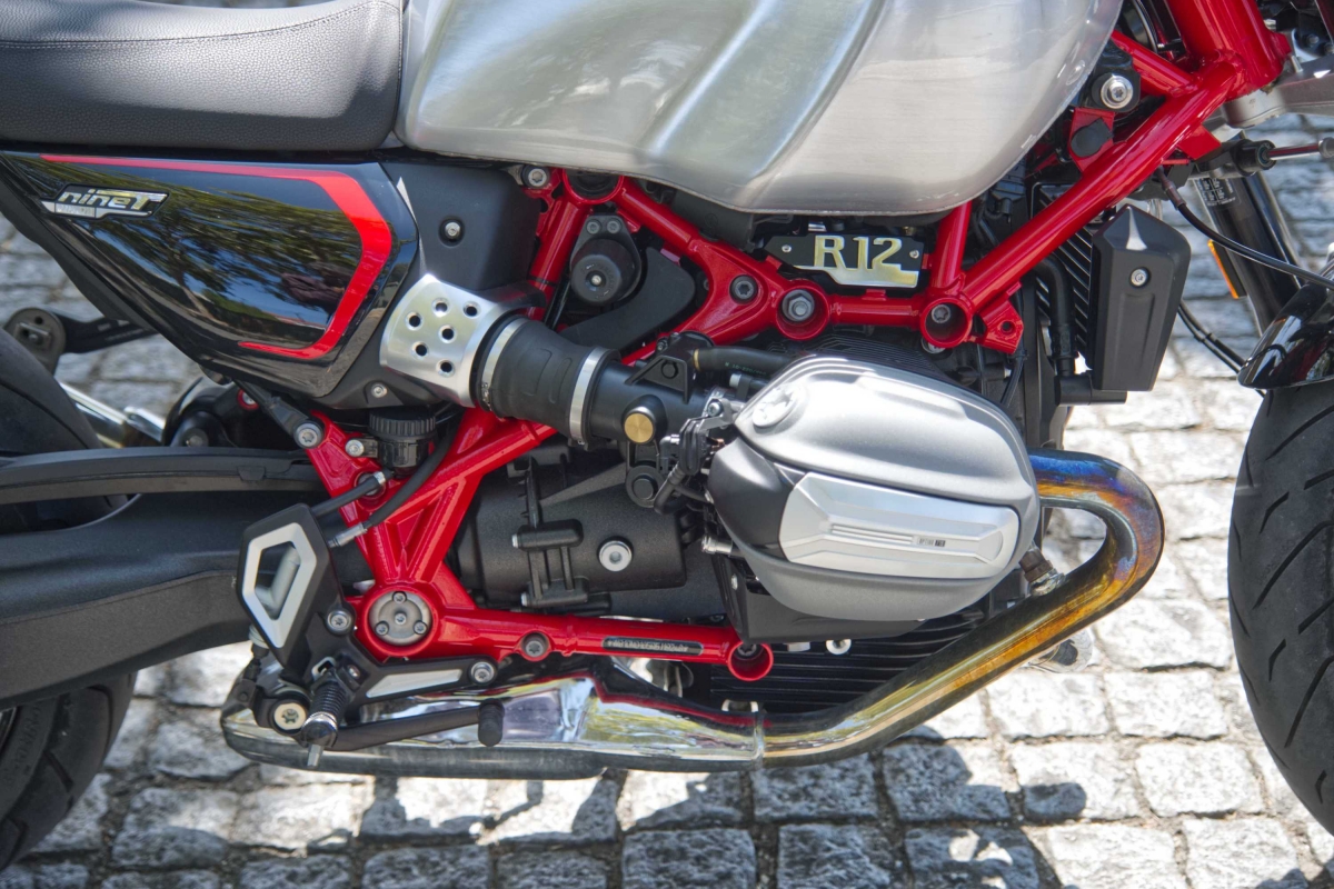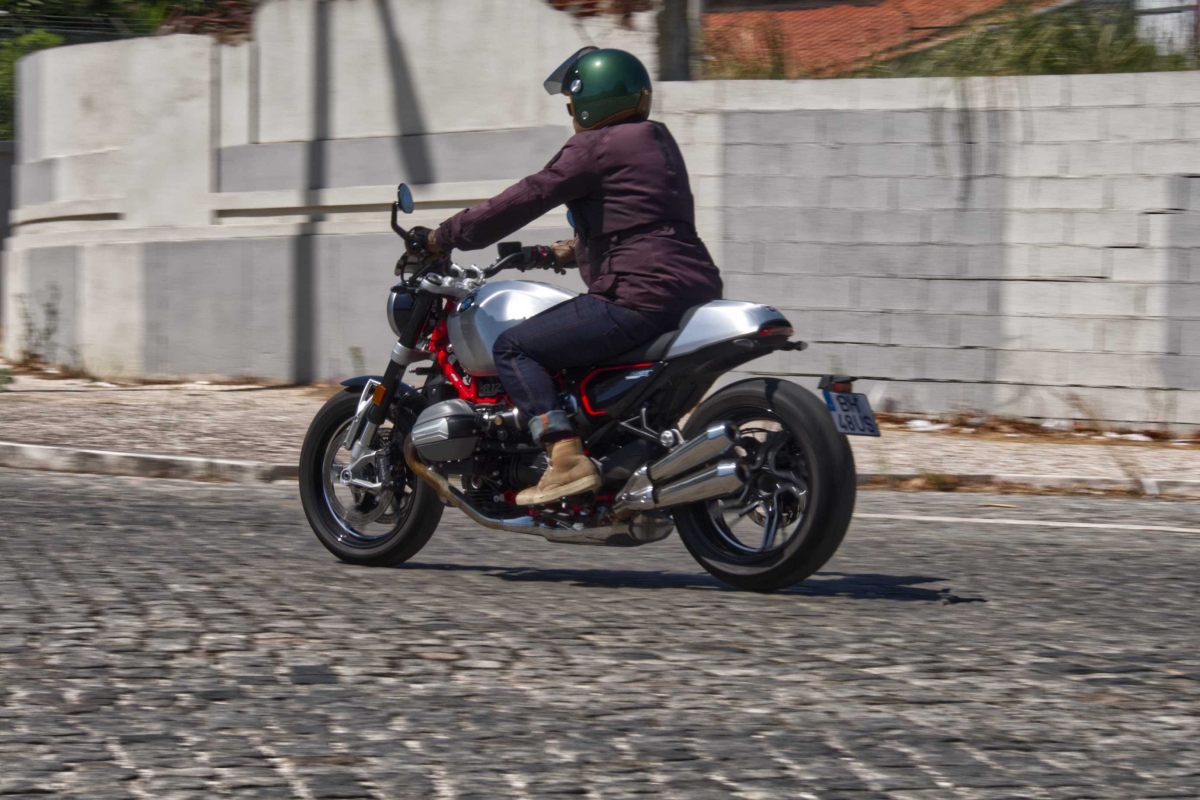 No coração da R NineT está o motor flat-twin de 1.170 cc, arrefecido a ar/óleo, que está prestes a fazer 100 anos. Debita 109 cavalos de potência e 115 Nm de binário. Esta configuração do motor oferece uma potência previsível com uma sonoridade satisfatória, ideal tanto para passeios na cidade como para longos troços em estrada aberta. Este motor boxer mantém o equilíbrio entre a suavidade e uma ligeira vibração que acrescenta carácter sem causar fadiga em viagens mais longas. Pode não ser o mais potente da gama da BMW Motorrad, mas tem uma qualidade nostálgica que se adapta perfeitamente à personalidade da moto.