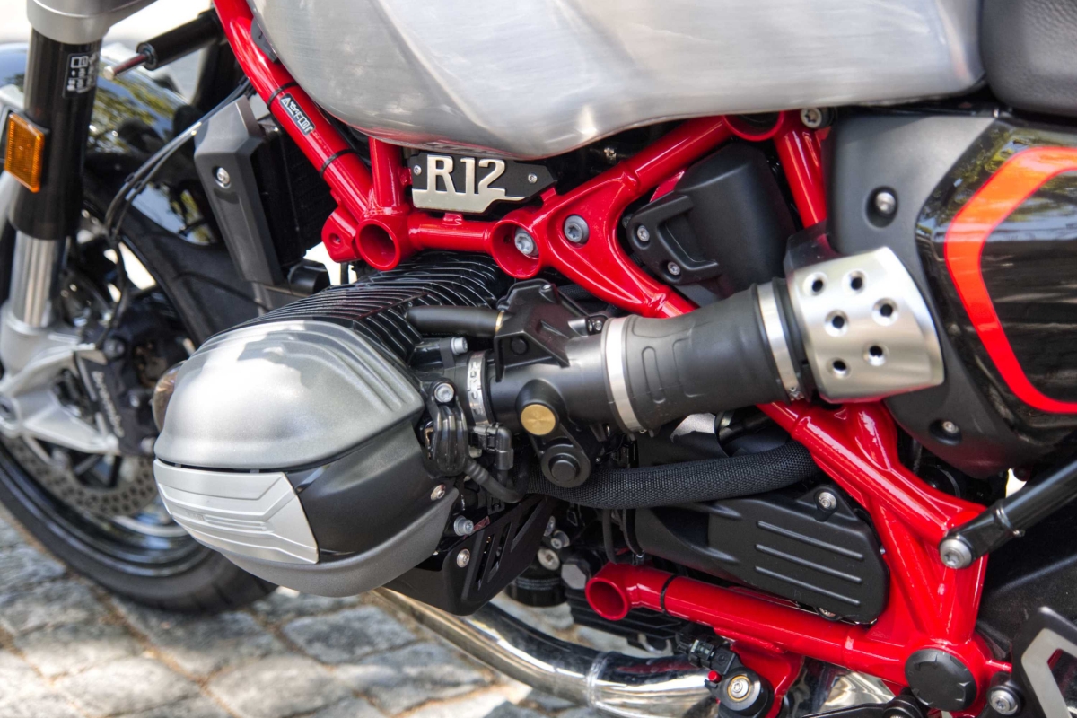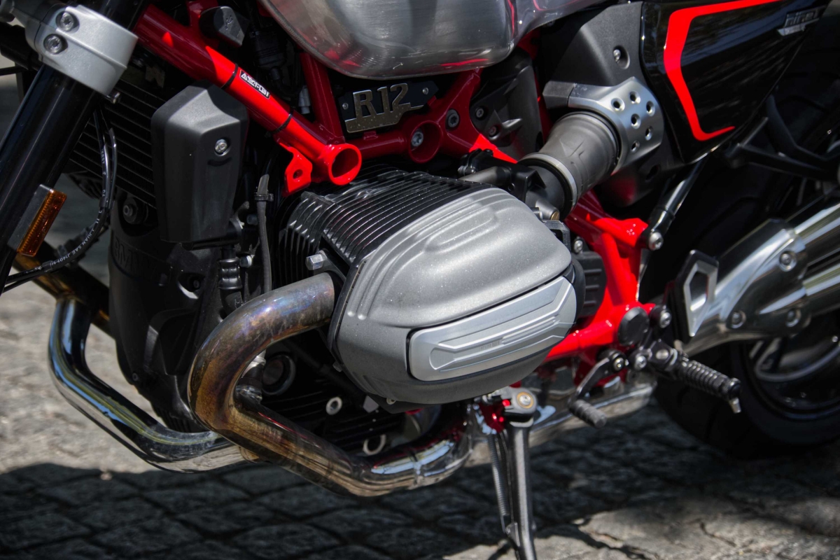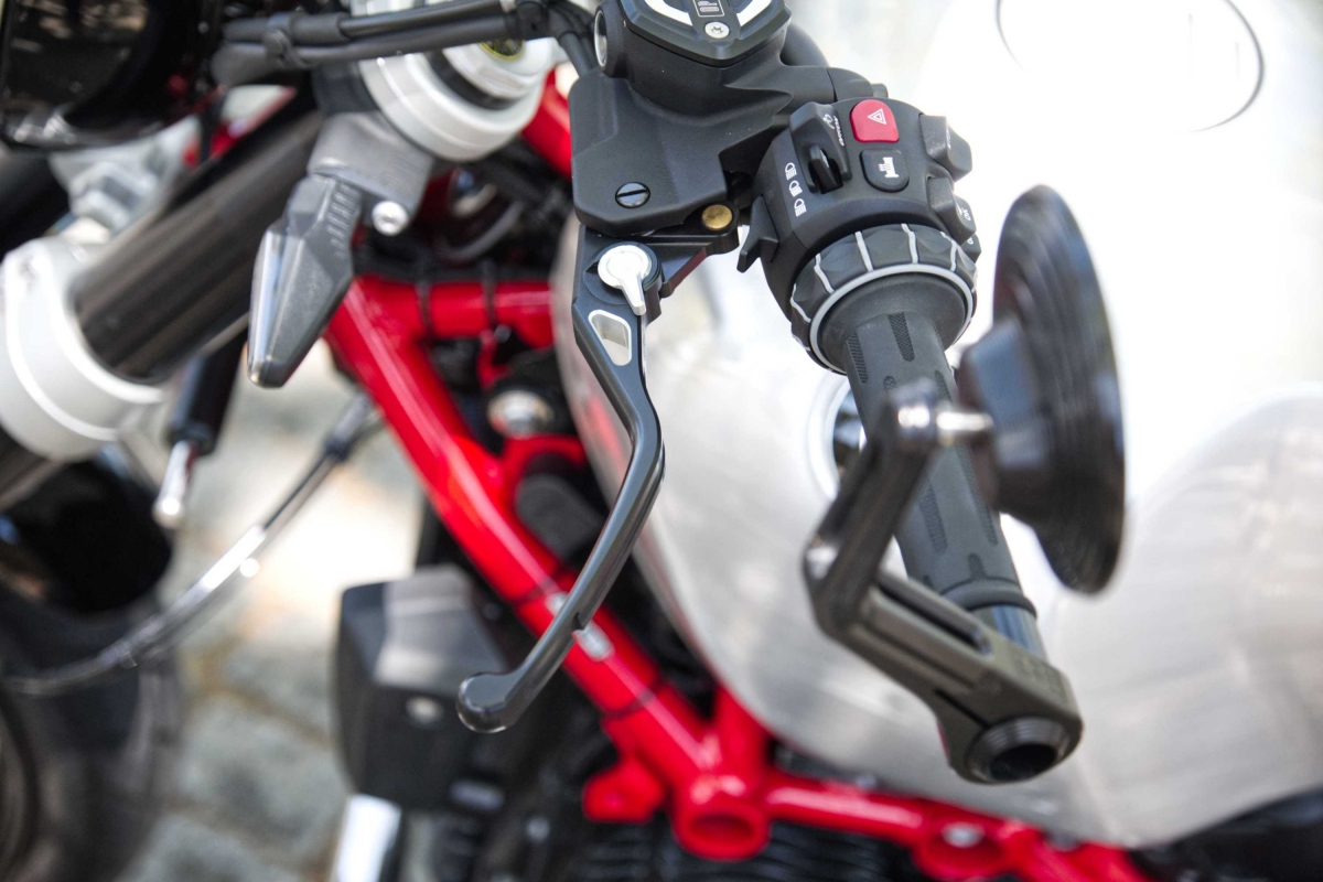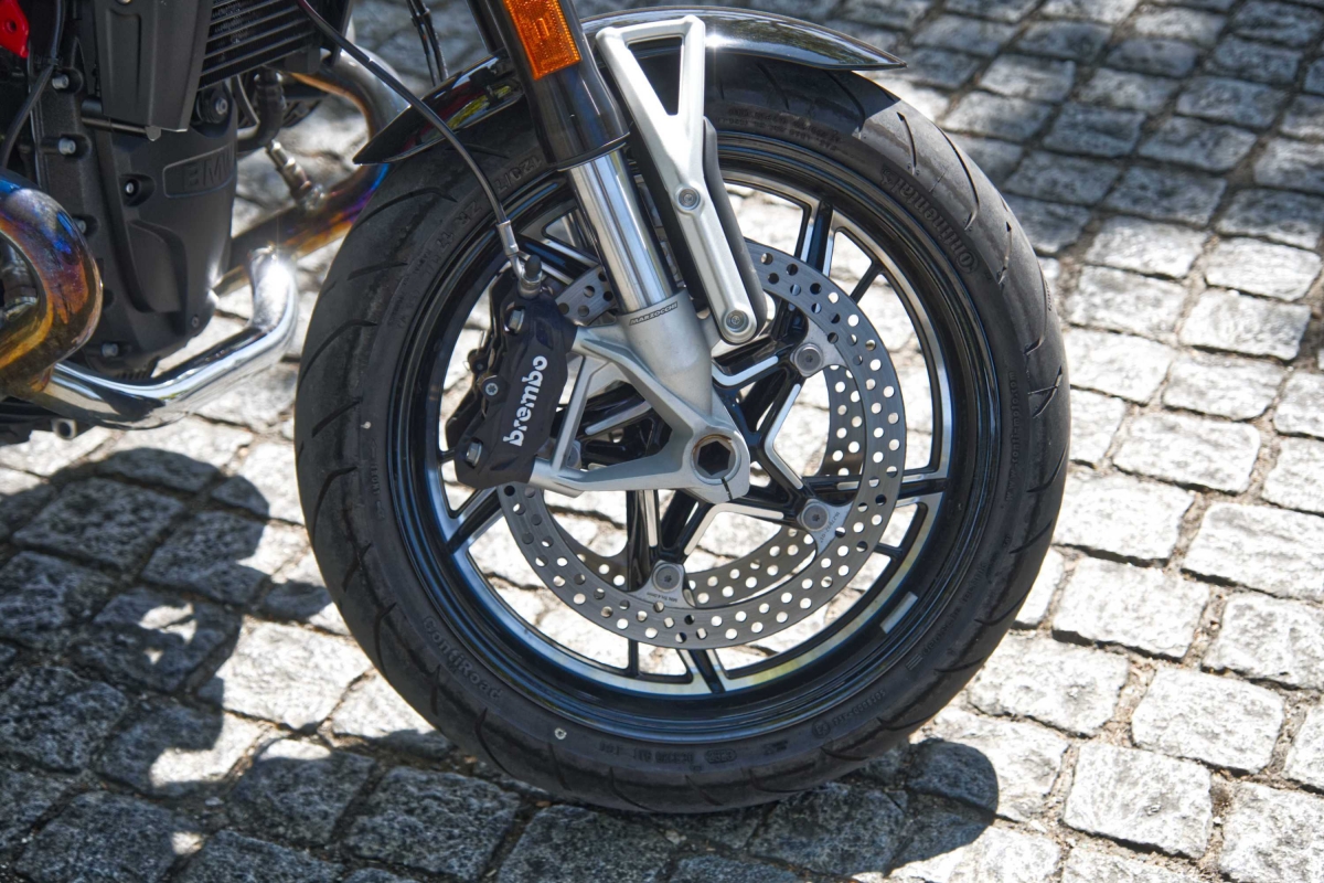 As opções de fábrica são aparentemente ilimitadas. A moto de teste veio com o painel de instrumentos TFT de 3,5 polegadas opcional, embora preferíssemos os mostradores analógicos normais para uma moto retro deste tipo, e embora a ignição sem chave da R 12 seja útil, continua a ser necessário usar uma chave para a tampa do depósito de combustível. No geral, o nível de equipamento é muito elevado e o nível de acabamento é soberbo.