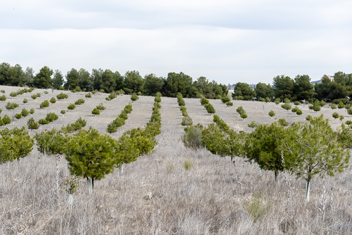 O pessoal do Departamento de Transição Ecológica da Câmara Municipal de Rivas é responsável pela seleção dos espécimes. Pinheiros, amendoeiras, oliveiras, azinheiras… espécies que estão a ajudar a recuperar esta área natural protegida no centro da península. E a empresa de serviços municipais Rivamadrid é responsável por toda a execução e posterior manutenção do Bosque Scania, incluindo irrigação no período de verão.