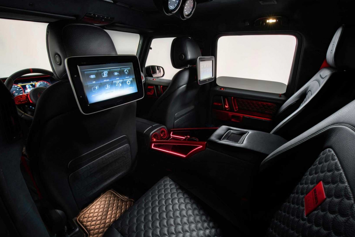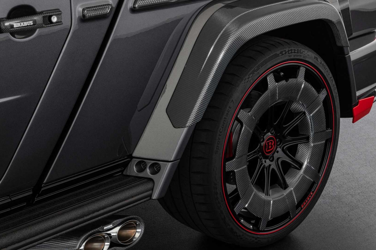 Nesta Brabus é tudo em grande! A altura ao solo foi elevada em 49 cm e e as ligações ao solo ficam a cargo de impressionantes pneus 205/40 à frente e 355/25 atrás, em jantes de 24”. A suspensão Brabus RideControl de altura e amortecimento regulável utiliza amortecedores em alumínio.