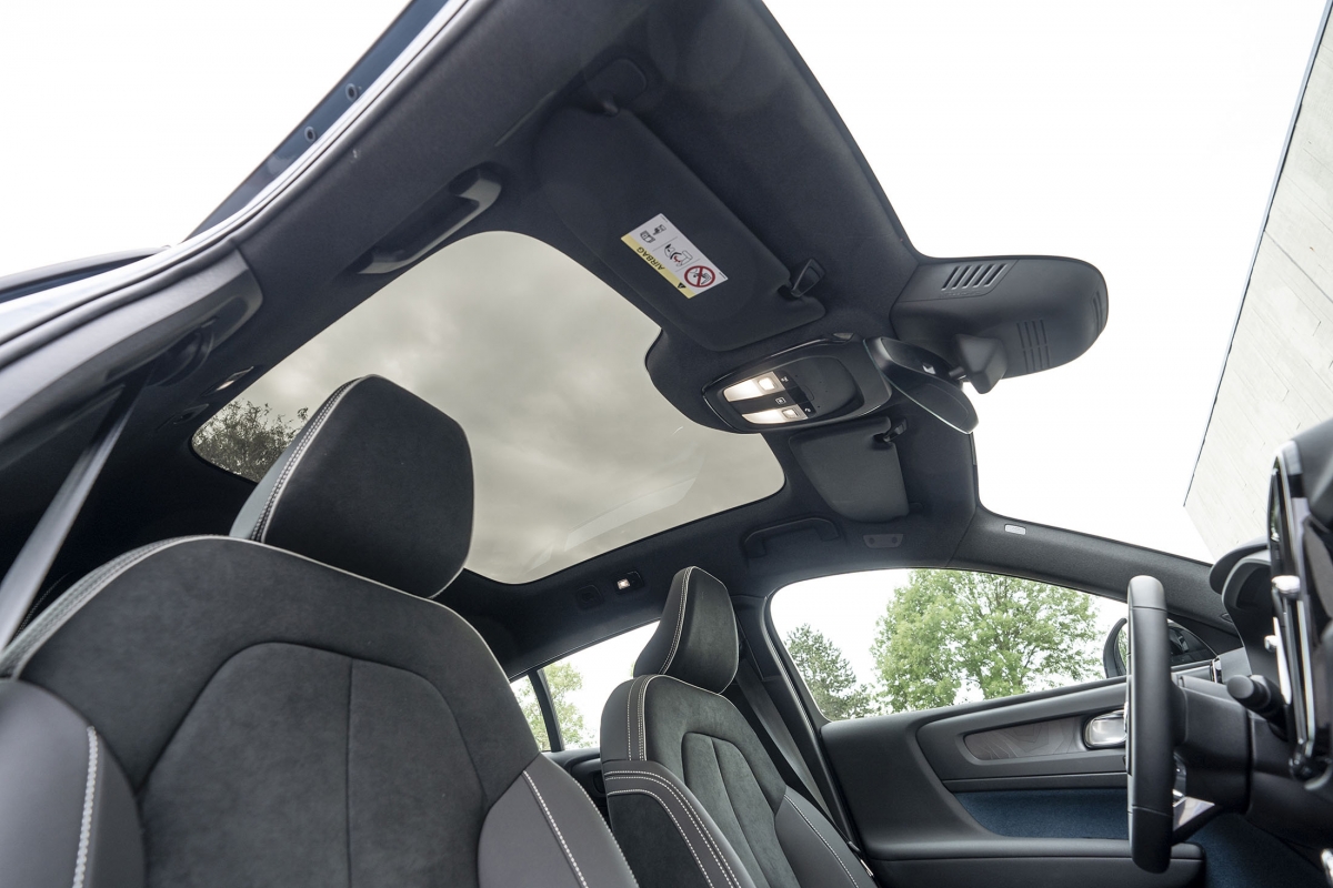O exterior é onde o C40 se diferencia do seu irmão XC40 ao assumir uma silhueta coupé definida pelo ângulo da linha do tejadilho. Já no interior encontramos mais semelhanças, diferindo no design do tabliê e na utilização de materiais provenientes da reciclagem de rolhas de cortiça e garrafas de plástico com um feeling premium pela sensação ao toque. O espaço a bordo não é referencial no segmento, a causa é a utilização da plataforma CMA, que por uma questão de custos está pensada para receber também motores de combustão como é o caso do XC40. Os dois carros são montados na mesma linha de montagem, como pudemos comprovar na visita à fábrica em Ghent, na Bélgica. Ainda assim há espaço disponível para acolher quatro adultos muito confortavelmente, sendo o lugar do meio do banco de trás penalizado pela existência do túnel de transmissão reservado ao irmão XC40 que ainda monta um motor de combustão. A bagageira disponibiliza 480 litros e na frente ainda há um compartimento com mais 30 litros, onde se podem guardar os cabos de carregamento.