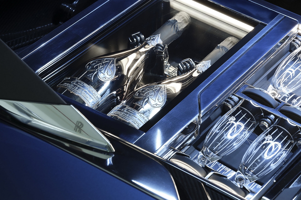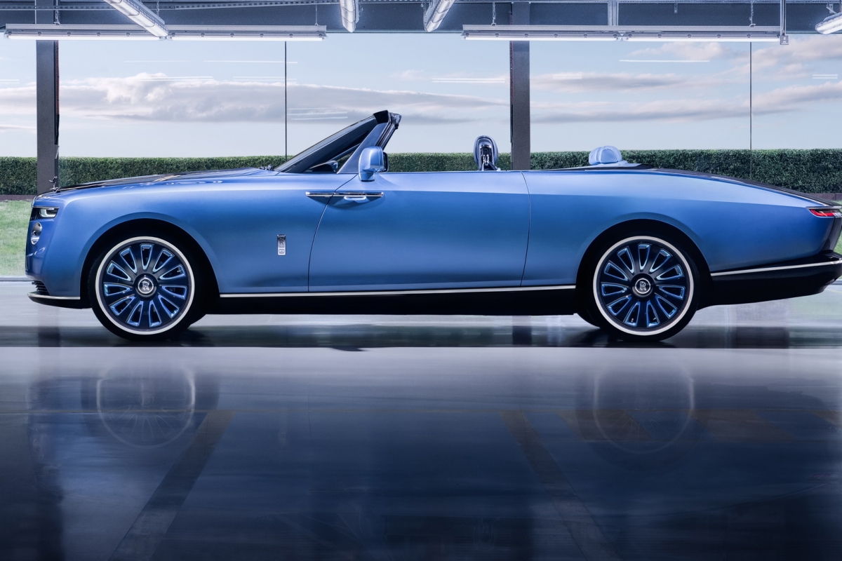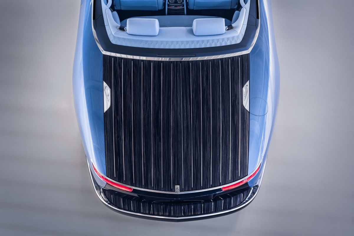Já a traseira em madeira Caleidolegno (normalmente utilizada no interior de outros Rolls-Royce) é inspirada na cauda dos iates. A cobertura “hard-top” acrescenta um grau de elegância adicional ao conjunto.
