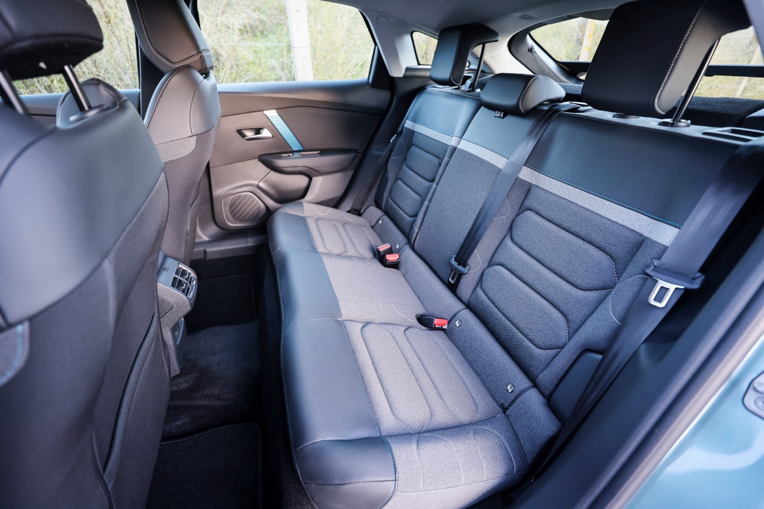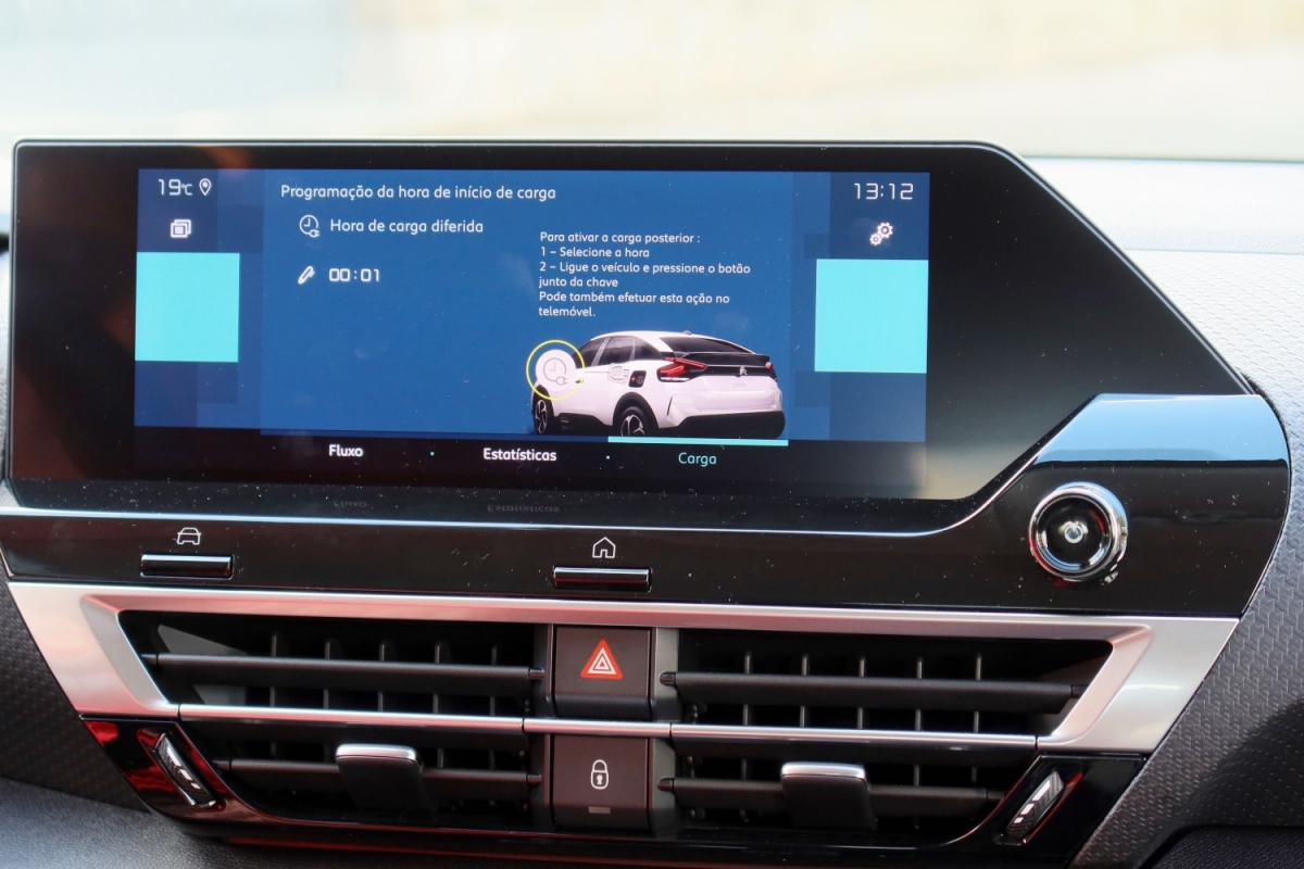 Para o primeiro teste deste novo C4 escolhi a versão elétrica Ë-C4, que pouco difere das outras, por fora. Há uns símbolos Ë e pouco mais. Por dentro, as diferenças ainda são menos, o que é bom sinal. Como a bateria está disposta em “H” sob os bancos da frente, túnel central e banco de trás, a habitabilidade é igual em todas as versões.
