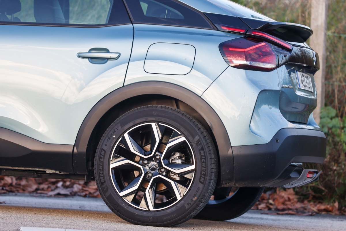 O novo C4, que já tive oportunidade de testar em Portugal, semanas antes da sua apresentação oficial no mercado nacional, aparece assim como um crossover com 156 mm de altura ao solo e enormes jantes de 18 polegadas. Os faróis de LED dispostos em “Y” deitado são a imagem de marca que se está a estender a todos os modelos e o desenho do pilar traseiro é inspirado no antigo Citroën GS, diz a marca.