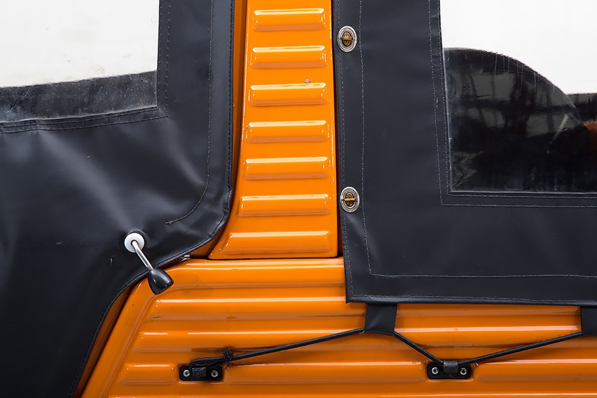 O para-brisas, também ele rebatível, incluía ancoragens para dois elementos metálicos, que se uniam num arco amovível, localizado imediatamente acima dos bancos da frente. Sobre a estrutura era possível instalar uma cobertura em tecido, criando um habitáculo para os passageiros da frente.