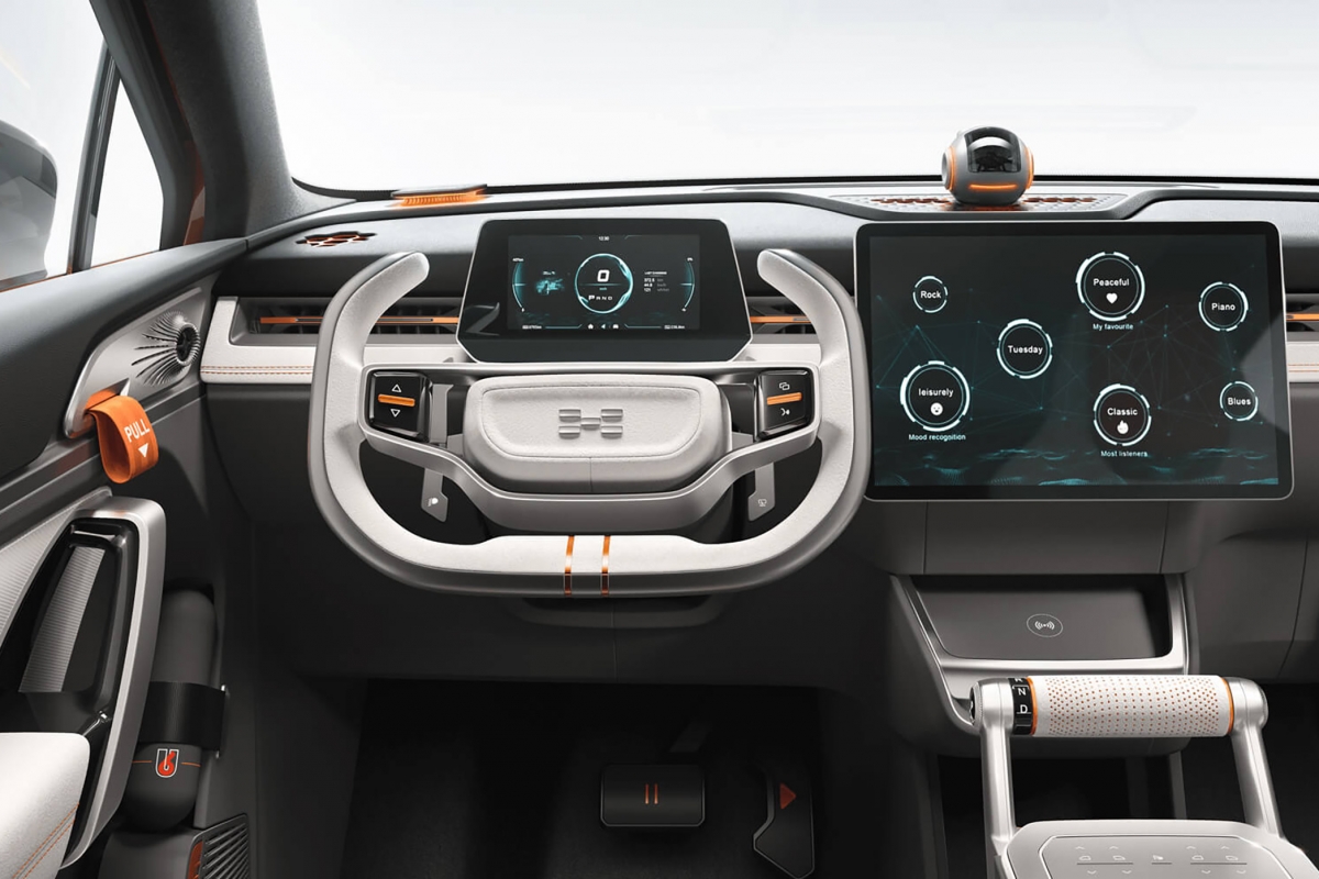O controlo das definições do veículo e do sistema multimédia é acessível através de um ecrã tátil “suspenso” de 14,6”, montado em posição central no tablier. Sobre o tablier encontra-se também um “pequeno robô”, uma interface homem-máquina dotada de um avançado sistema de reconhecimento de voz, que consegue falar para os ocupantes e ouvi-los, podendo assim ser usado para comandar numerosas funções do veículo e do sistema de infotainment. Complementa ainda este conjunto um painel tátil capacitivo, próximo do “grip shift”, para acesso mais direto a vários comandos.