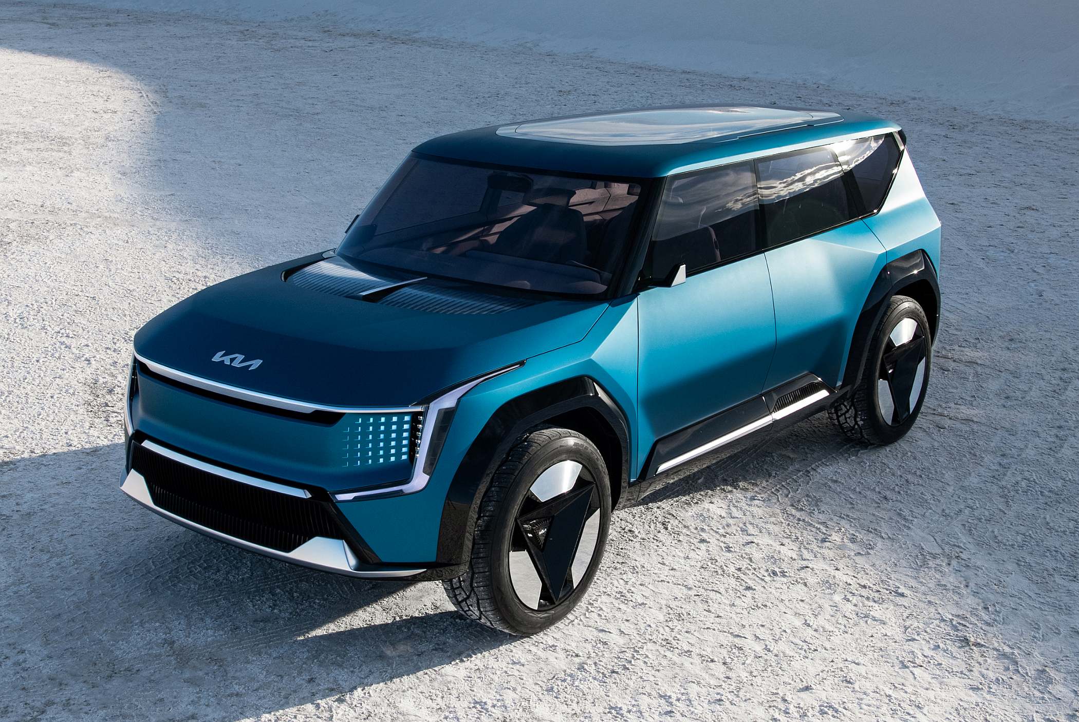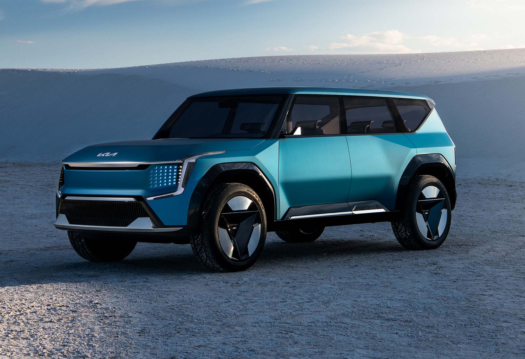 Inspirando-se no pilar “Bold for Nature”, com a sua postura robusta e assertiva, o Concept EV9 apresenta um formato aventureiro e extrovertido. No exterior, as suas proporções permitem antever um SUV com três filas de bancos, o que significa um modelo altamente capacitado, prático e pronto para a ação.