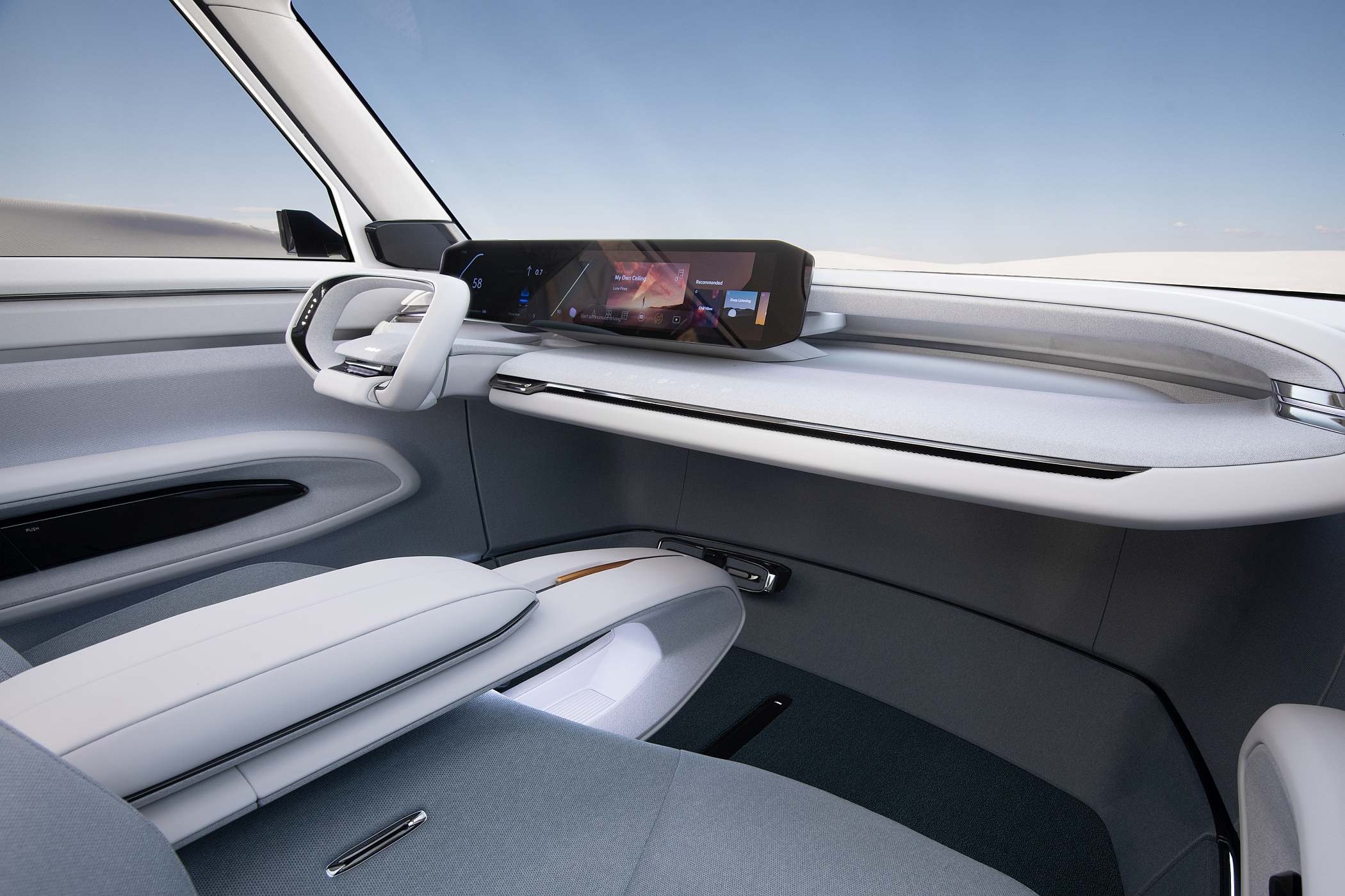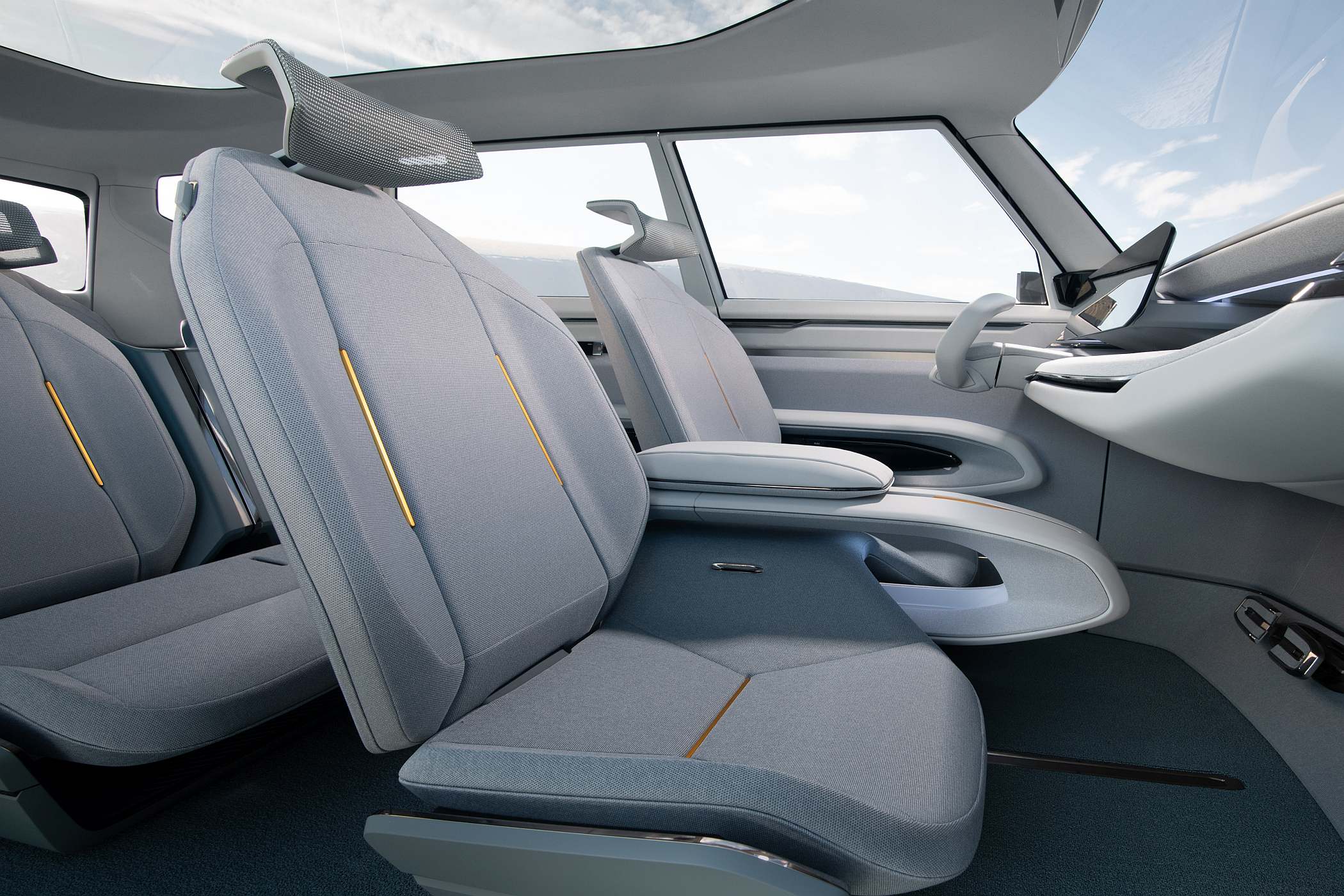 Contrastando com a postura musculada, os elementos suaves e acolhedores que encontramos por toda a carroçaria são destacados por elementos retilíneos e bem definidos. A geometria sólida expressa-se através de uma distribuição da massa que beneficia de um design sofisticado, ao mesmo tempo que o volume do harmonioso habitáculo foi definido de forma a tornar o Concept EV9 mais convidativo e acessível.