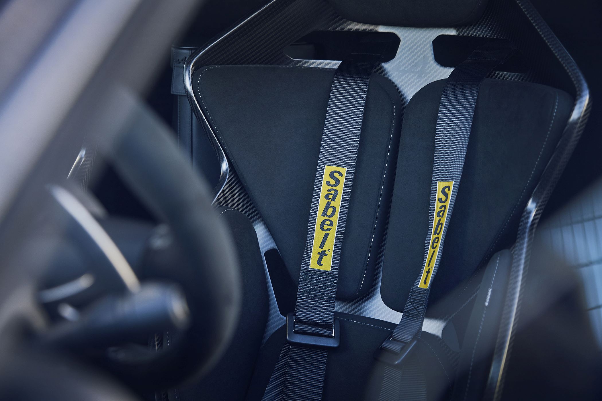 Por fim, quando se pensa em redução de peso, o terceiro pilar, percebe-se que a Alpine não poupou esforços para algo que já parecia impossível: reduzir ainda mais o peso face ao A110 S. Aliciada pelo desafio, a marca de Dieppe olhou para o material que mais garantias dá neste capítulo – a fibra de carbono. Amplamente utilizada na competição, é aqui também aplicada em imensos detalhes, muitos dos quais já referidos: ‘splitters’ e saias laterais (com autocolante ‘Do not Walk‘ à semelhança do que se pode encontrar nas asas dos aviões), capot, tejadilho, cobertura traseira, aileron, difusor e jantes.