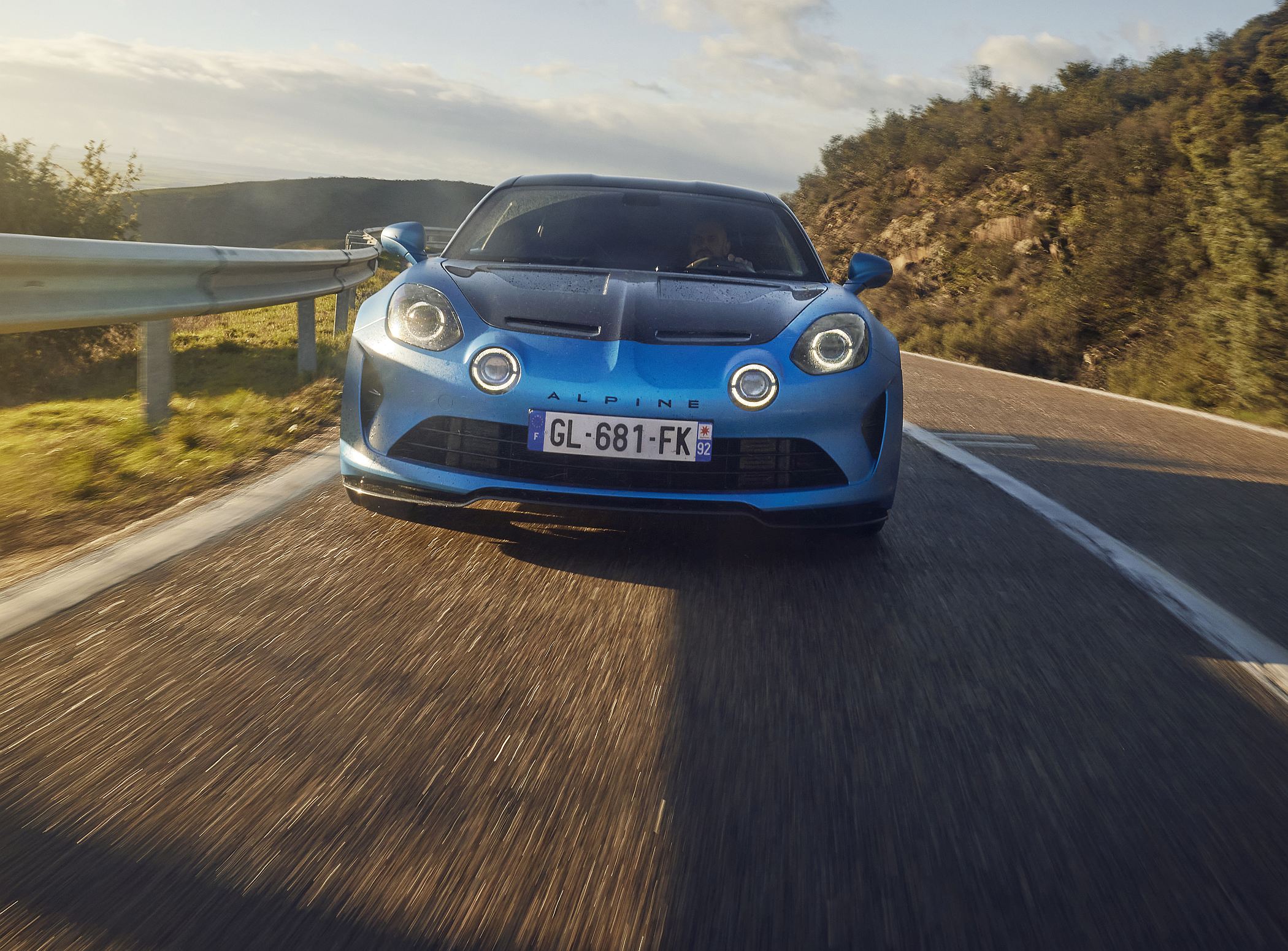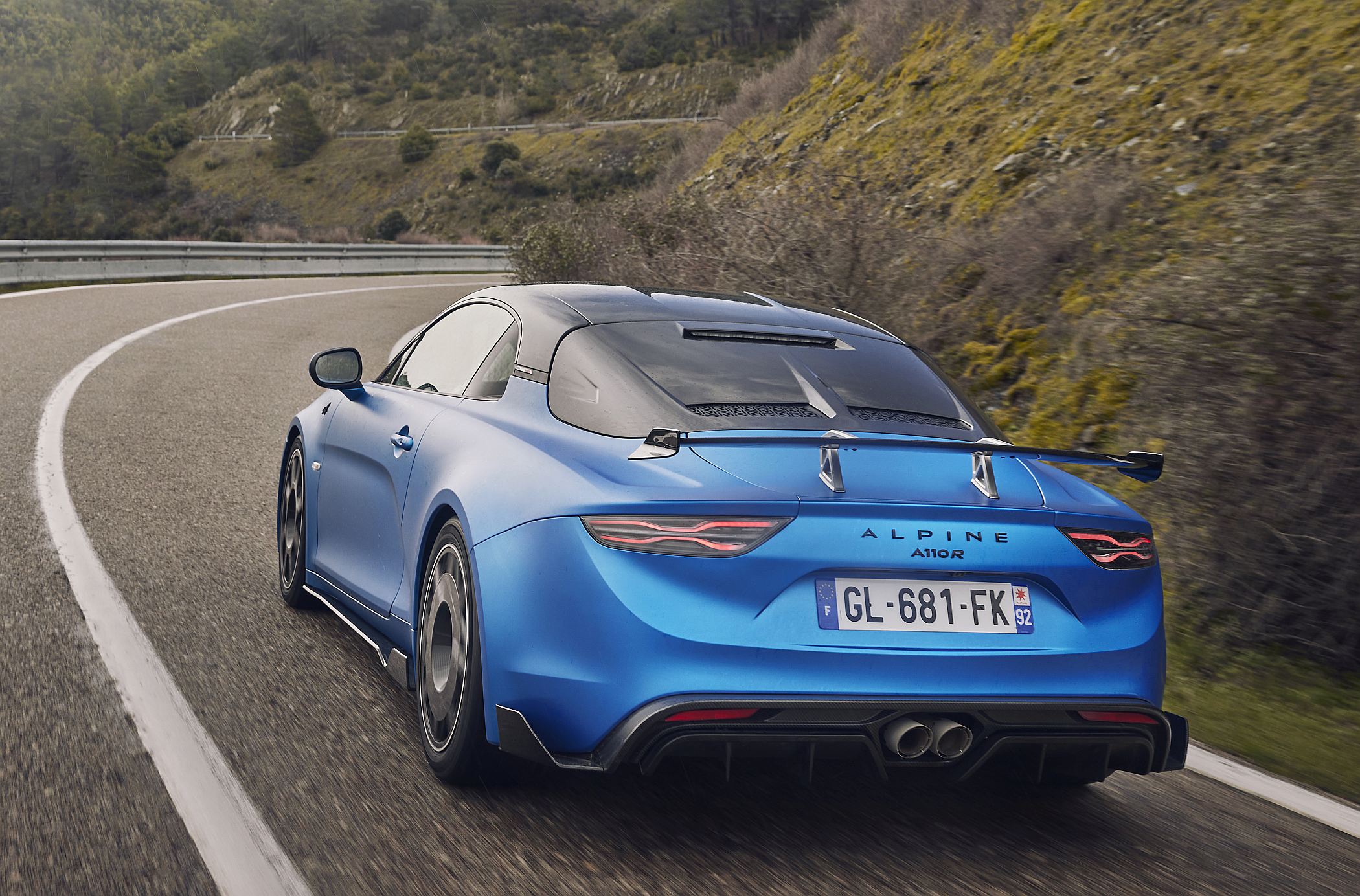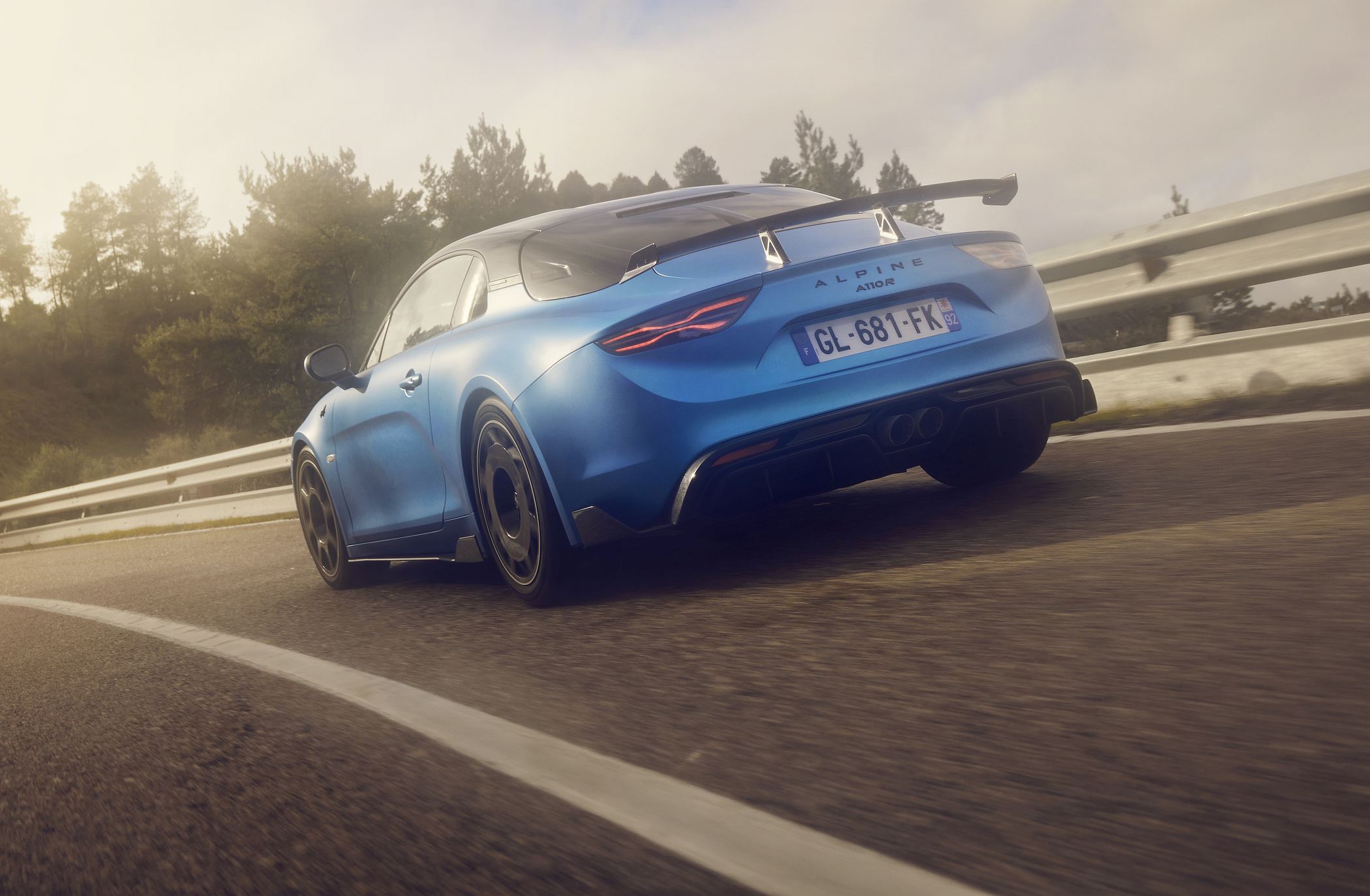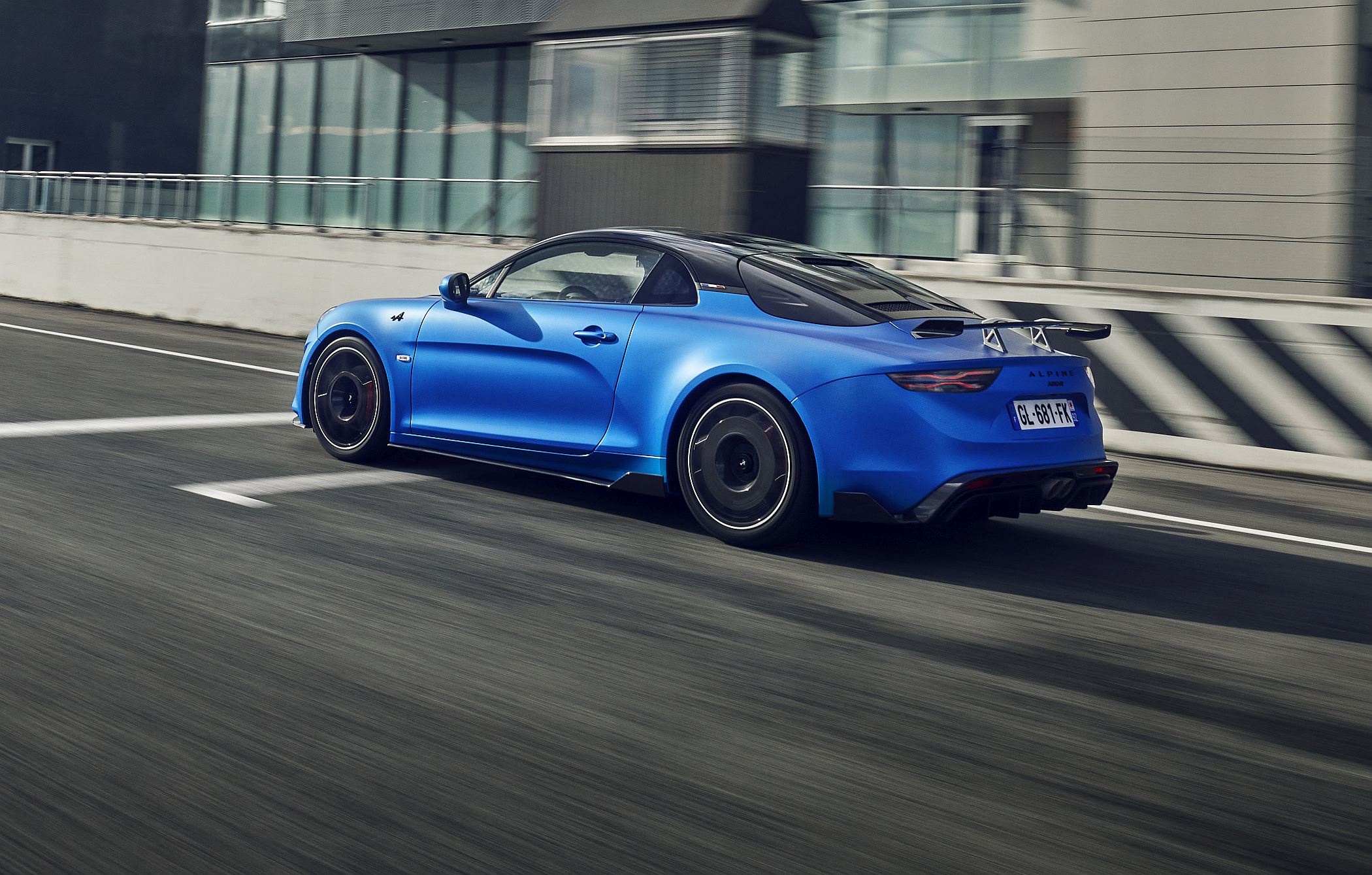 A marca trabalhou, assim, em torno de três pilares: aerodinâmica, chassis e leveza. No caso da aerodinâmica, a silhueta já de si bastante esguia do A110 foi aprimorada com uma série de elementos que melhoram a sua prestação, sobretudo em pista. Um dos exemplos é o aileron traseiro com pilares curvos, naquilo que na gíria se chama de ‘pescoço de cisne’ – a asa está posicionada em plano ligeiramente inclinado e com os suportes curvos.