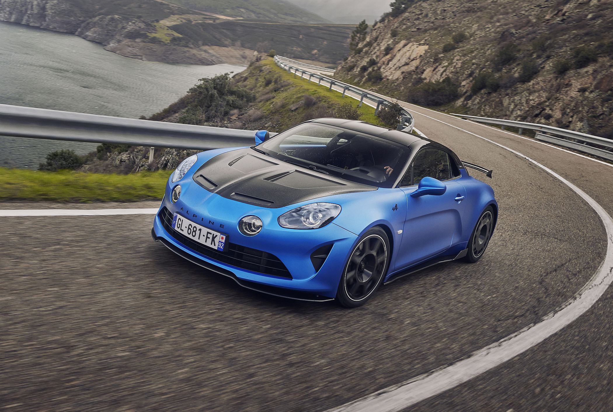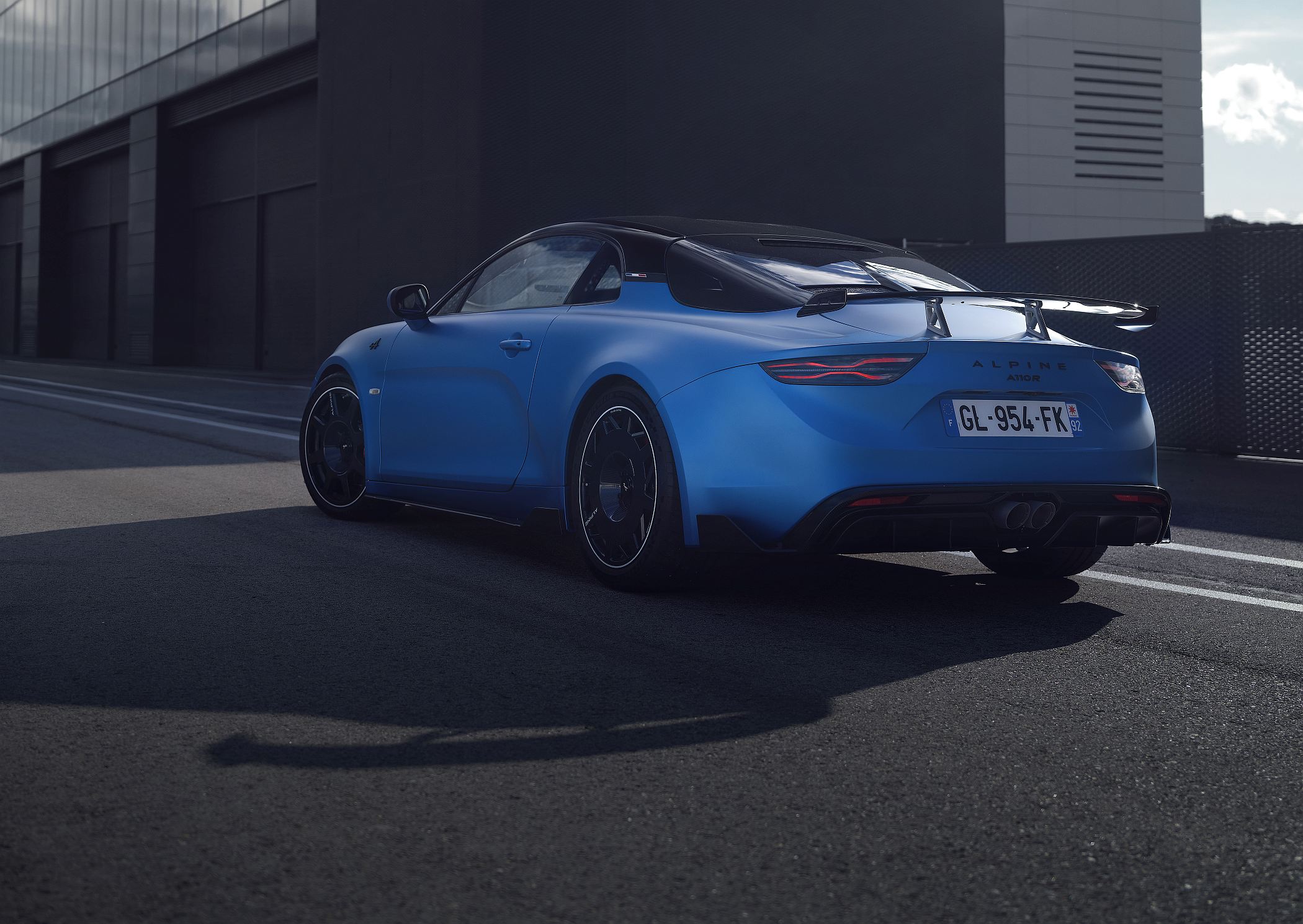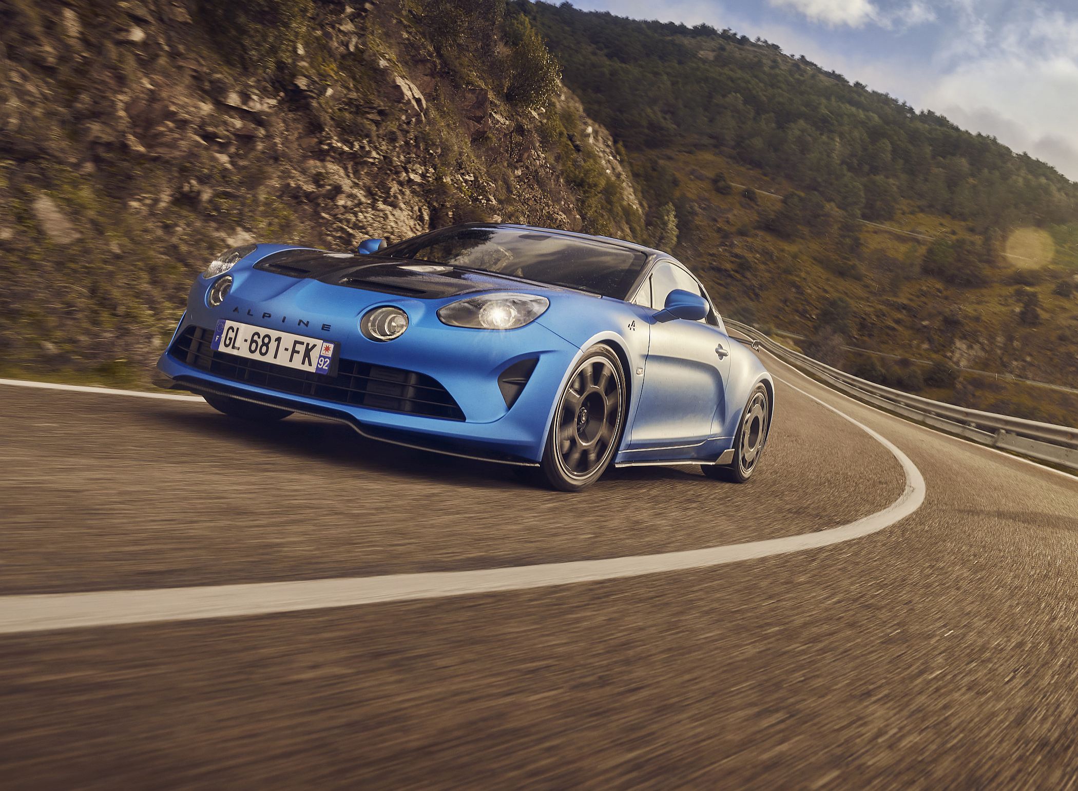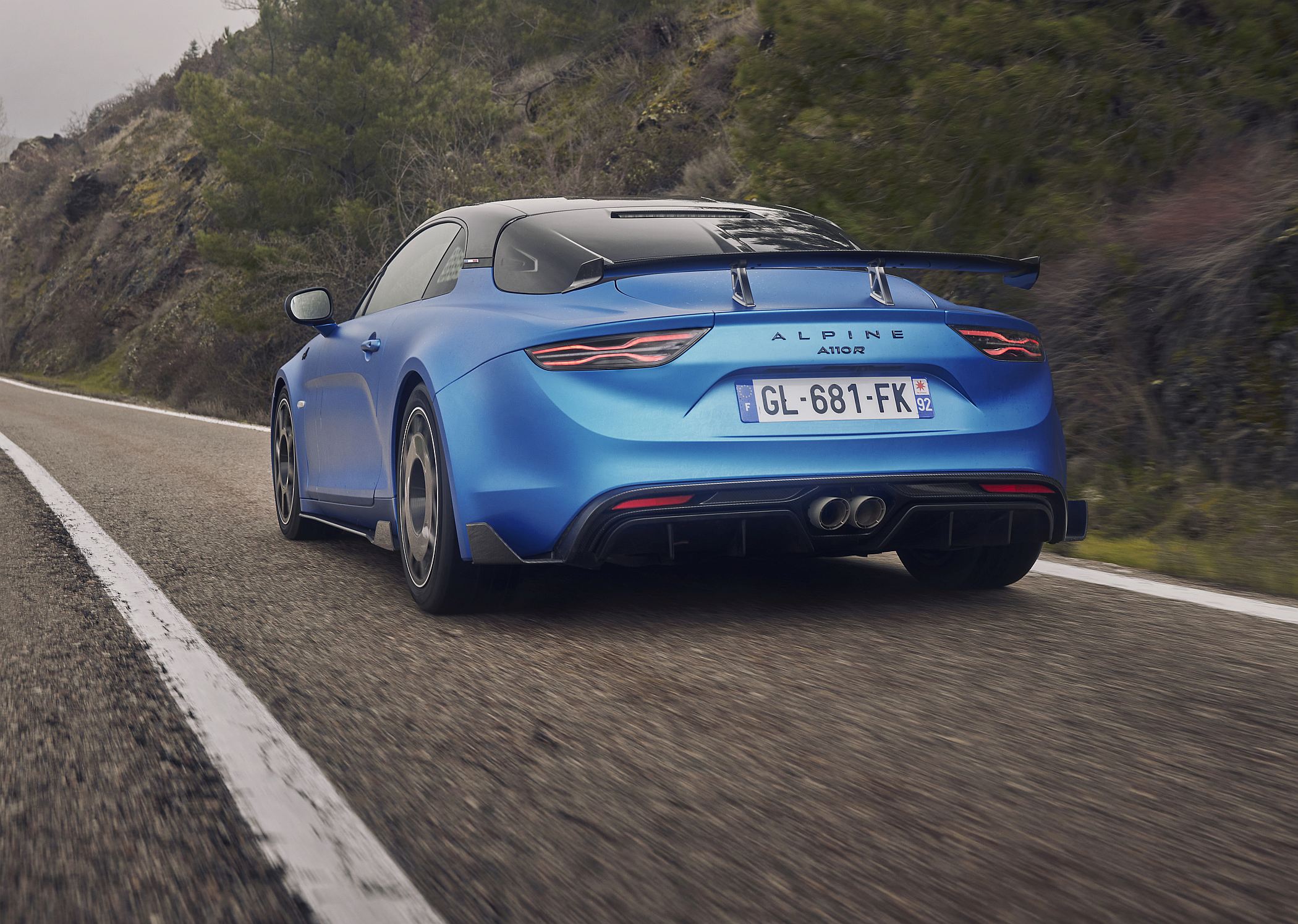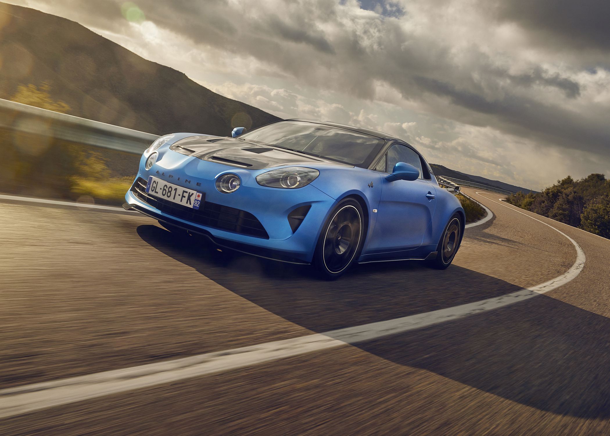 A marca trabalhou, assim, em torno de três pilares: aerodinâmica, chassis e leveza. No caso da aerodinâmica, a silhueta já de si bastante esguia do A110 foi aprimorada com uma série de elementos que melhoram a sua prestação, sobretudo em pista. Um dos exemplos é o aileron traseiro com pilares curvos, naquilo que na gíria se chama de ‘pescoço de cisne’ – a asa está posicionada em plano ligeiramente inclinado e com os suportes curvos.