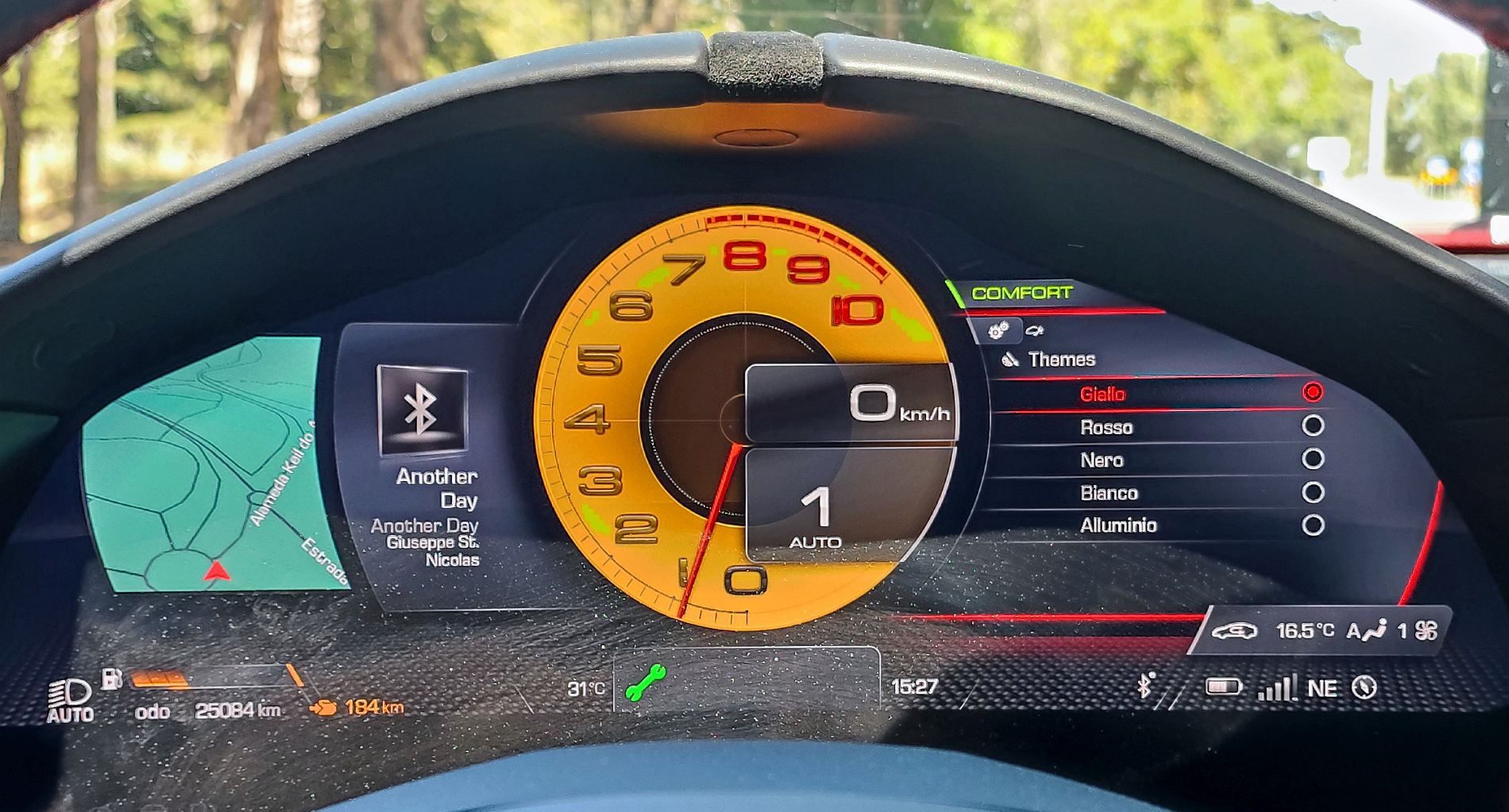 Assim, melhora também a sua atuação na condução urbana e durante o funcionamento do sistema start-stop, sendo estes dois aspetos em que o Roma está efetivamente bem conseguido, adotando tremenda suavidade de utilização em ritmos urbanos. Esta caixa de velocidades de nova geração é baseada na unidade estreada no SF90 Stradale, se bem que no Roma com escalonamento mais longo e marcha-atrás mecânica (no Stradale era de atuação elétrica).
