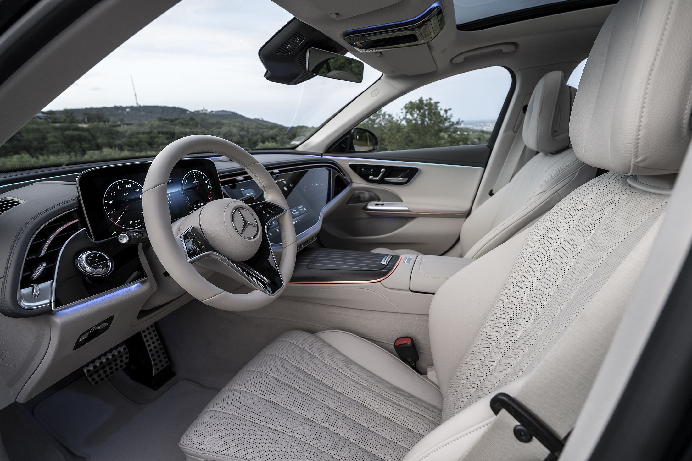 A marca aposta também numa nova arquitetura eletrónica que tem por base uma capacidade melhorada de processamento de dados e de compreensão de todos os componentes digitais a bordo. O pack MBUX Entretenimento Plus estará disponível para o novo Classe E. Inclui os serviços Mercedes me connect e o pack de dados de um operador de comunicações móveis. Um módulo de comunicações com 5G como tecnologia de transmissão é utilizado para potenciar a capacidade tecnológica deste sistema avançado, permitindo ao mesmo tempo uma enorme velocidade de transferência de dados – o acionamento por voz da assistente virtual (agora capaz de reconhecer até se o condutor se encontra sozinho ou não no habitáculo) é mais rápido e tem novas funcionalidades, como a disponibilização de informações sobre monumentos e pontos de interesse circundantes. E, apesar de recorrer a fontes online como a Wikipedia, fá-lo de forma muito rápida!
