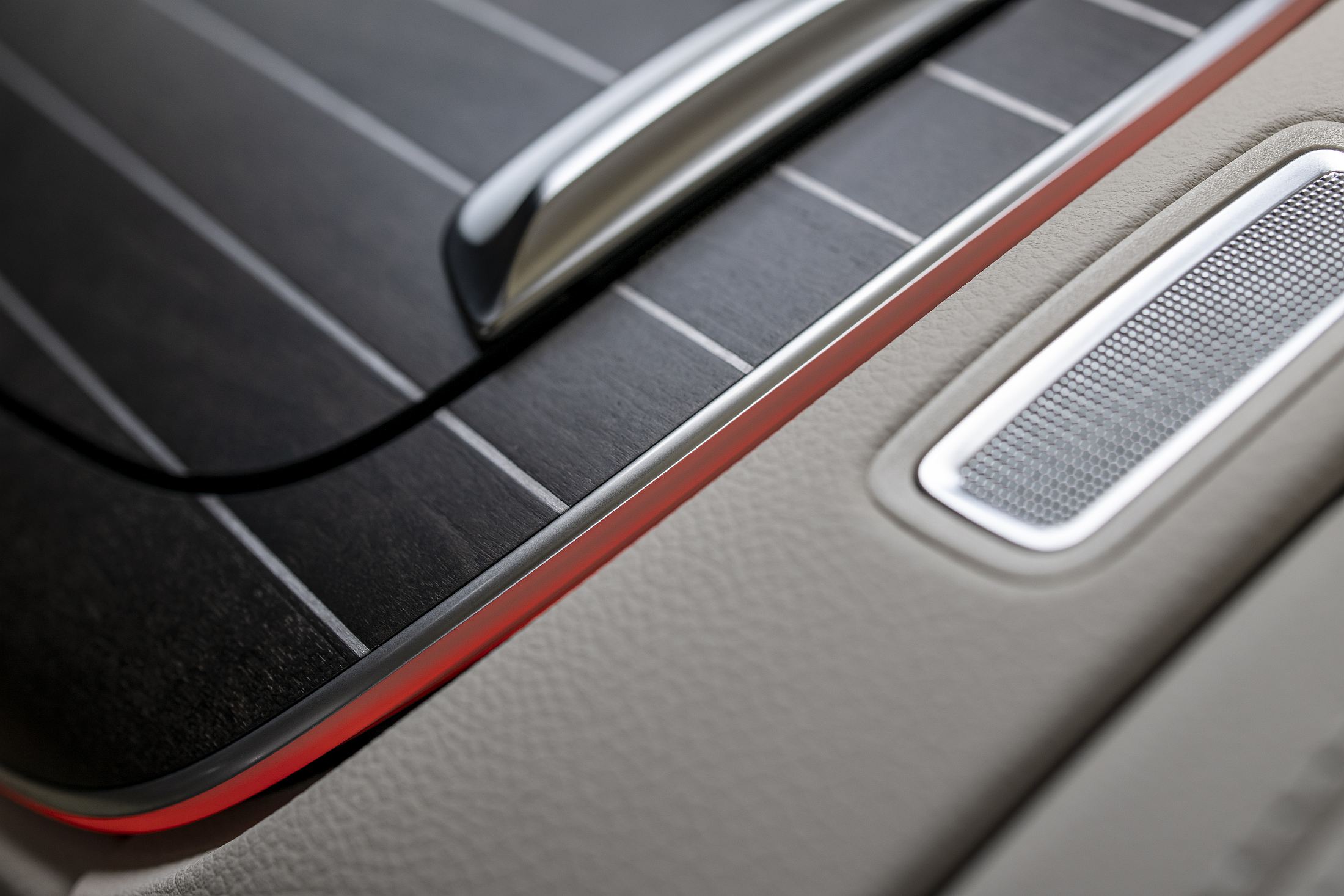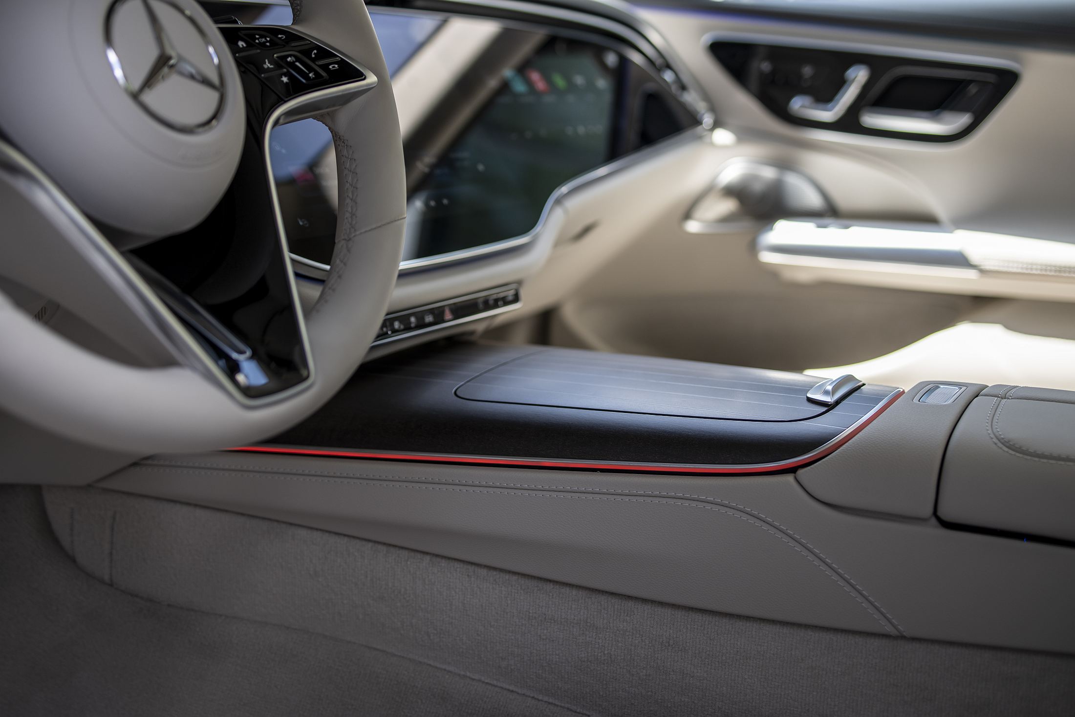 O interior revela uma construção irrepreensível em todos os aspetos, misturando bons materiais e conceitos de design elaborados, auxiliados pela componente luminosa muito presente no habitáculo. A secção frontal do tablier é iluminada pela faixa de luz da Iluminação Ambiente Ativa, que se estende em forma de arco desde o para-brisas, passando pelos pilares A e terminando nas portas, servindo não só fins estéticos, mas também de alerta para situações de perigo na condução e ao abrir portas, por exemplo.