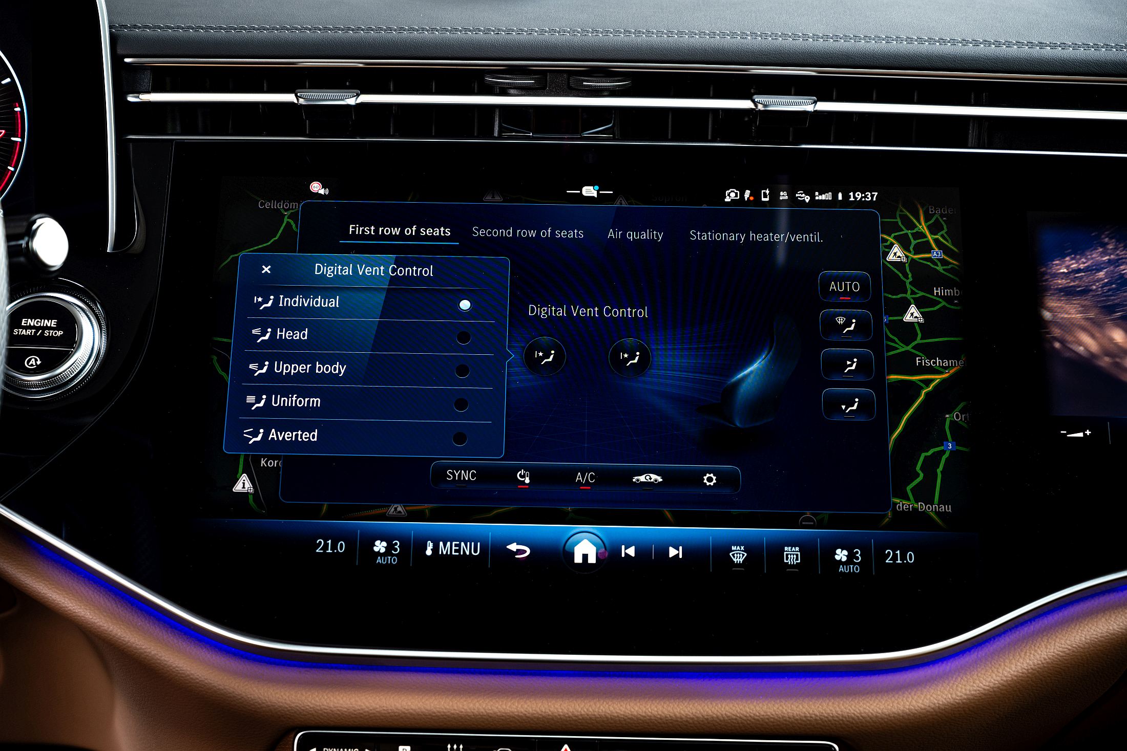 O sistema de som da Burmester com tecnologia Dolby Atmos é outra qualidade excecional no interior, dando aos passageiros uma qualidade sonora de primeira linha, também com uma particularidade de efeito de batida no encosto do condutor.