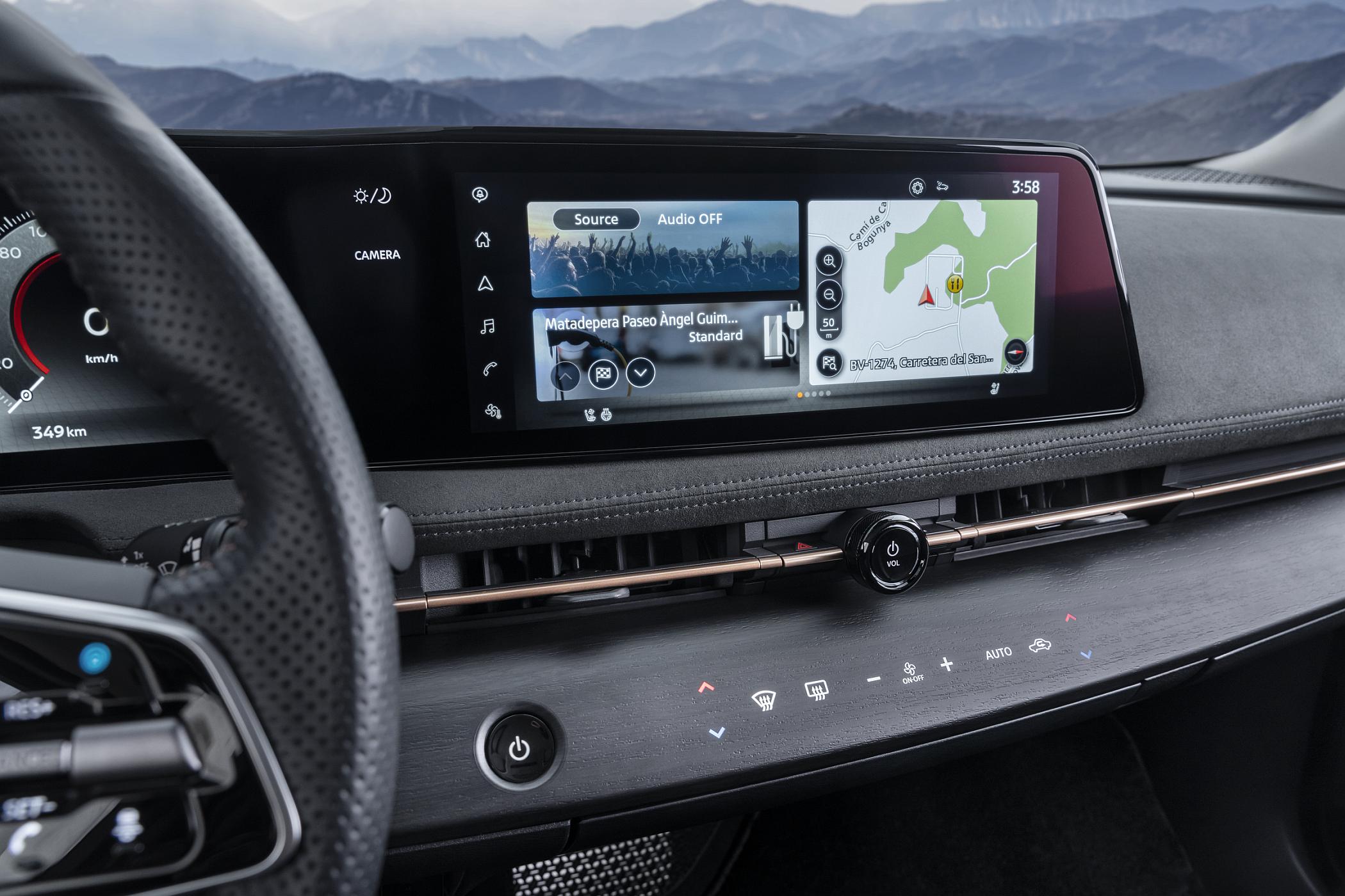 Existem ainda dois ecrãs de 12.3″, um para a instrumentação e outro para o sistema de infoentretenimento, o qual dispõe da mais recente tecnologia da marca, com sistemas de assistência e serviços conectados com updates Over the air, Amazon Alexa, Google home, programação de rotas inteligentes e controlos remotos de algumas funcionalidades. O condutor tem ainda direito a um head-up display com as principais informações de condução.