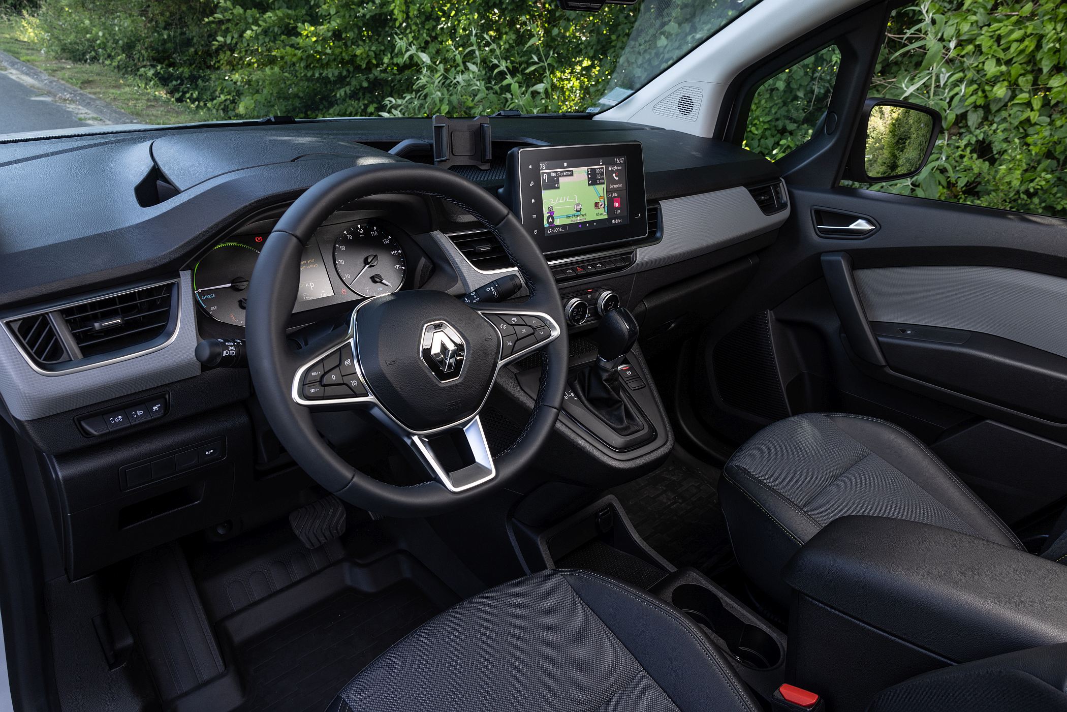 Assim, deslizando a porta lateral traseira de correr e abrindo a porta do passageiro (praticamente a 90 graus), obtém-se aquela que é a maior abertura lateral do mercado: 1,45 m, o que lhe permite assim carregar grandes volumes a partir da zona lateral sem a intromissão do pilar B. A marca operou diversos reforços estruturais para garantir que a condução e a segurança em nada perdiam com esta solução, apresentada anteriormente nos modelos com motor de combustão. Ainda no capítulo das soluções de trabalho, destaque para a galeria interior retrátil ‘Easy Inside Rack’, os três bancos da frente com um encosto central rebatível para criar um escritório móvel, e os quase 60 litros de compartimentos de arrumação na cabina, incluindo a gaveta ‘Renault Easy Life’.