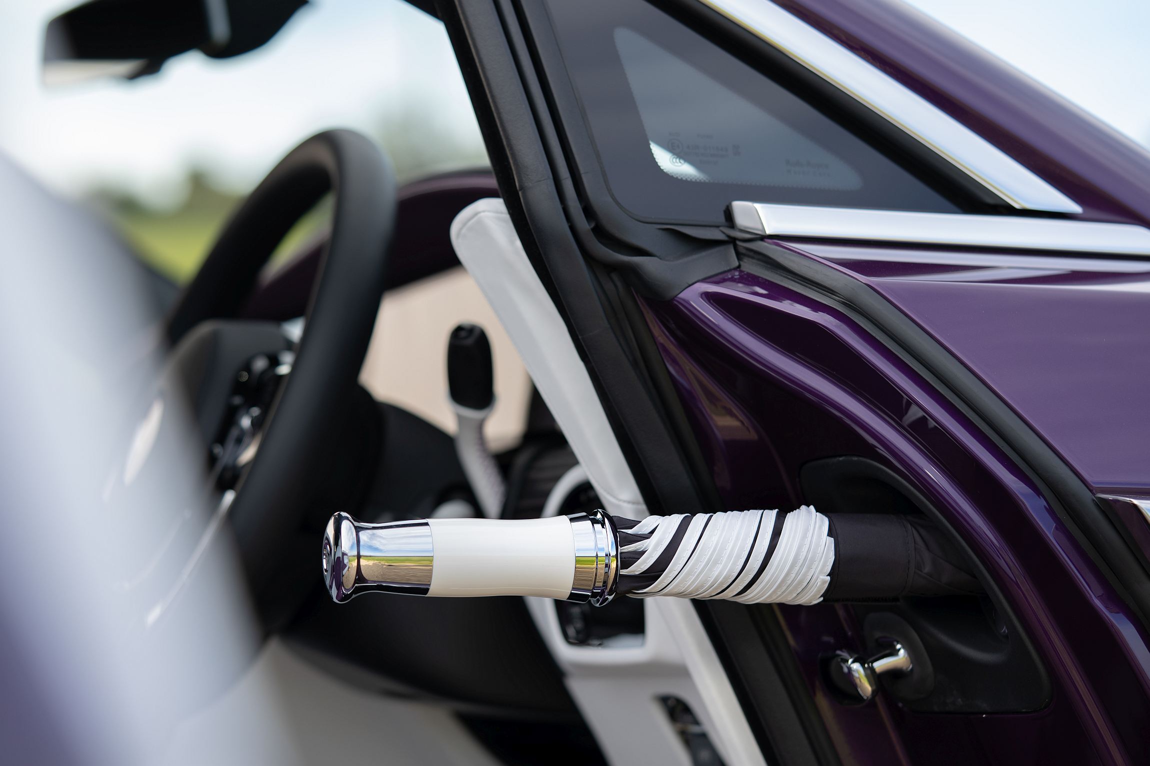 O Ghost é, talvez, o Rolls-Royce por excelência, com as suas portas ‘suicidas’ a serem pensadas com um propósito muito simples – o motorista sai do seu lugar e tem assim um ângulo melhor para, em dias de chuva, abrir o chapéu e permitir aos passageiros dos bancos traseiros uma maior proteção dos elementos. Aliás, na própria porta traseira encontra-se um chapéu-de-chuva, que pode, naturalmente, ser também personalizado, tendo a particularidade de existir um mecanismo na própria porta que seca o chapéu caso esteja molhado (que também existe no Spectre, por exemplo).