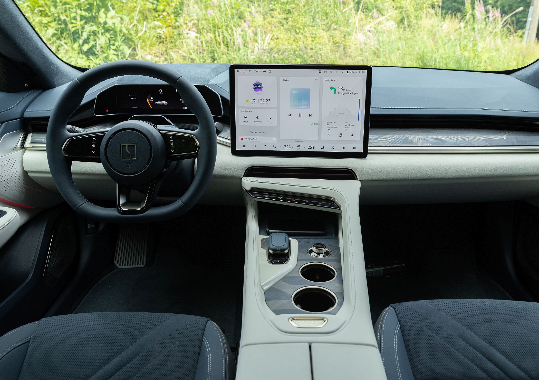 Em Gotemburgo, tivemos a possibilidade de conduzir a versão Privilege AWD, com tração integral e a mesma capacidade desportiva do Performance, sendo que um dos primeiros aspetos a reter é a sensação sólida que o 001 transmite na condução, com precisão na direção, ótimo controlo de movimentos de carroçaria e, não obstante, altos níveis de conforto que são demonstrativos do caminho feito pelos construtores chineses nestes últimos anos (mesmo com as jantes de 22 polegadas e 2350 kg de peso).