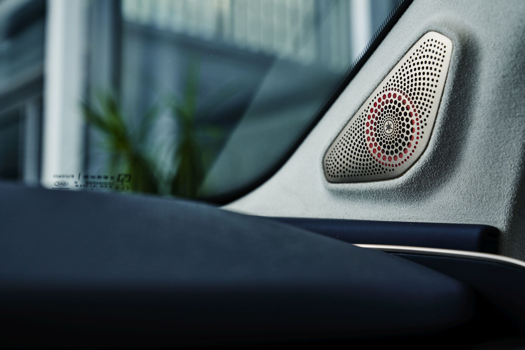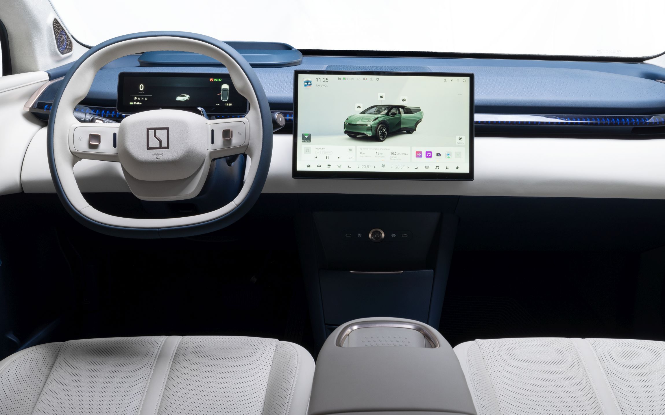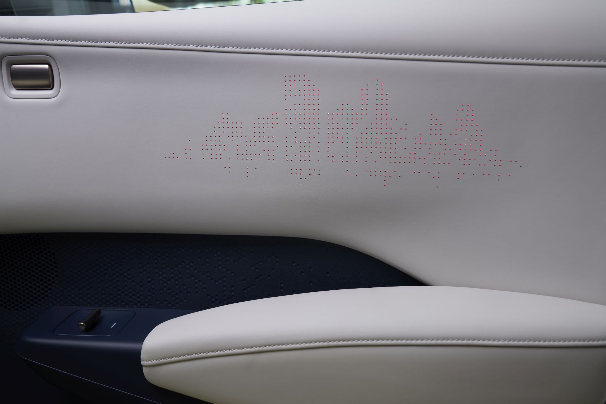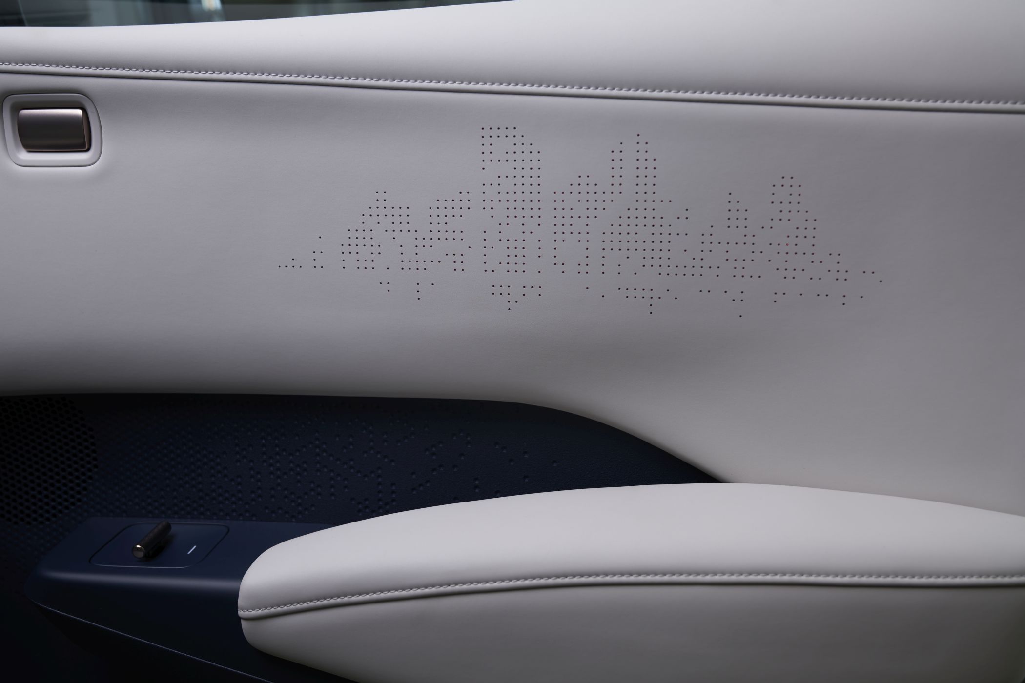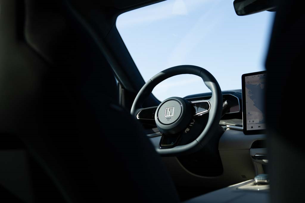 As unidades fornecidas para este primeiro contacto eram ainda de pré-produção, pelo que alguns detalhes estavam ainda a ser ultimados em matéria de conceção e acabamentos, mas a ideia geral é já bastante boa, nomeadamente, na tónica geral de construção e nos materiais escolhidos. Com efeito, a marca recorre apenas a materiais sustentáveis, recusando o couro tradicional em favor de tecidos produzidos com materiais reciclados, de tato macio e perfurado para conforto adicional (presente nos forros cimeiros do tablier e painéis das portas com o desenho ‘ponteado’ de edifícios de capitais europeias…).