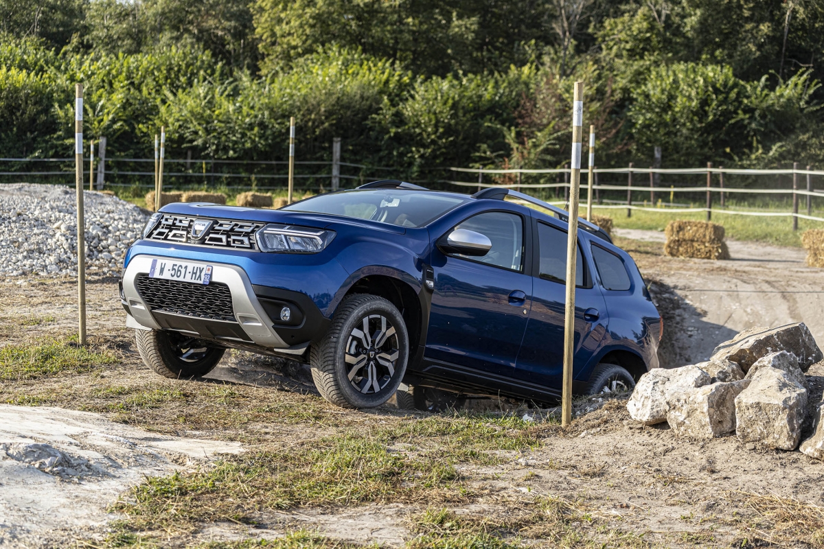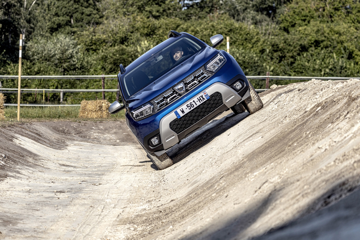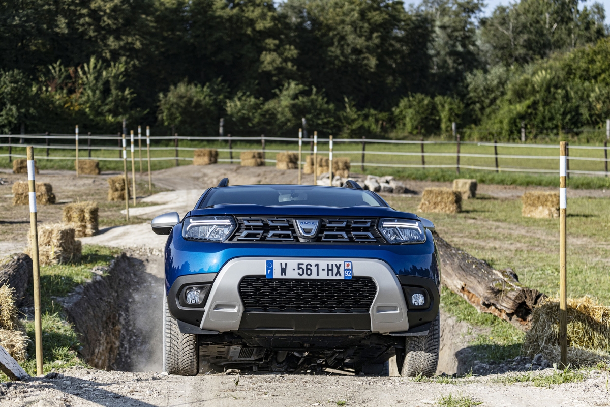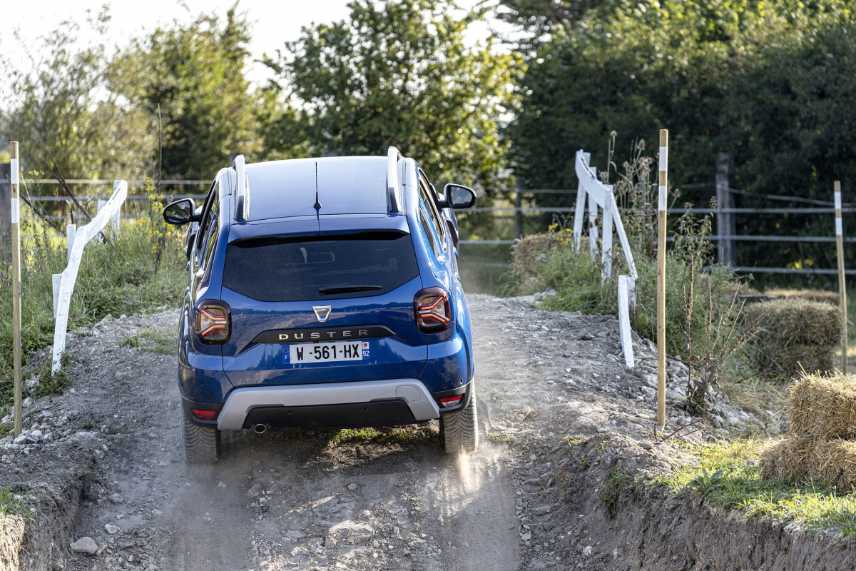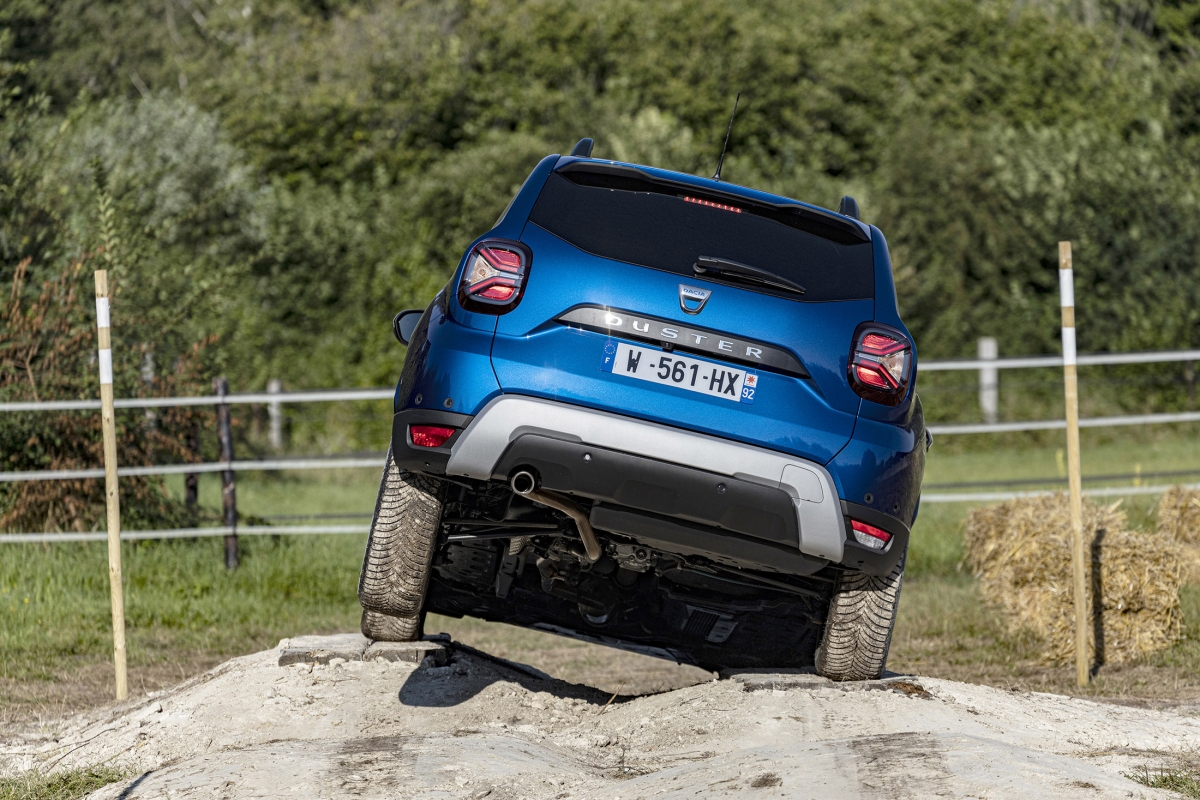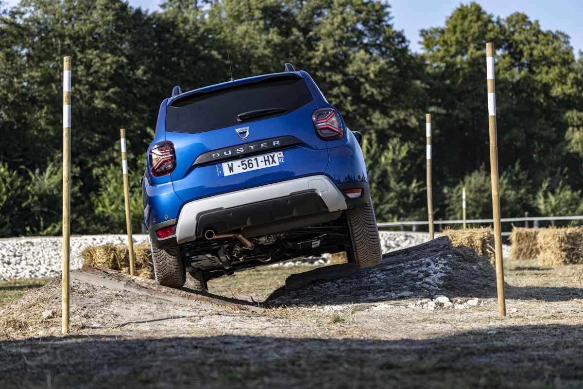 Para os jornalistas confirmarem as aptidões do Duster em ambiente off-road, a Dacia criou um percurso especialmente preparado para a versão 4WD Blue dCi de 115 cv e caixa manual. Com a ajuda de um instrutor a bordo e a primeira mudança engrenada, lá fomos ultrapassando os obstáculos um a um praticamente sem ser necessário tocar no acelerador: primeiro o cruzamento de eixos em que uma das rodas fica completamente no ar foi facilmente resolvido com a ajuda do controlo de tração. De seguida o desafio seria a inclinação lateral, com um grau de dificuldade acrescido, mas ultrapassado com a ajuda do inclinómetro e das câmaras laterais com direito a um elogio do instrutor: “estamos nos 30 graus, excelente! O máximo são 40°”. Antes do desafio final foi possível verificar a excecional brecagem, com um apertado ângulo de viragem numa curva apertada a ser efetuado de uma só vez, incomum em SUV e até mesmo nos jipes. Por fim foi necessário transpor um fosso com água no fundo em que tanto a entrada, como a saída tinham inclinações bastante acentuadas. Os 210 mm de altura ao solo e os ângulos: 30° de ataque, ventral de 21° e 33° de saída permitiram superar mais este desafio sem pestanejar.
